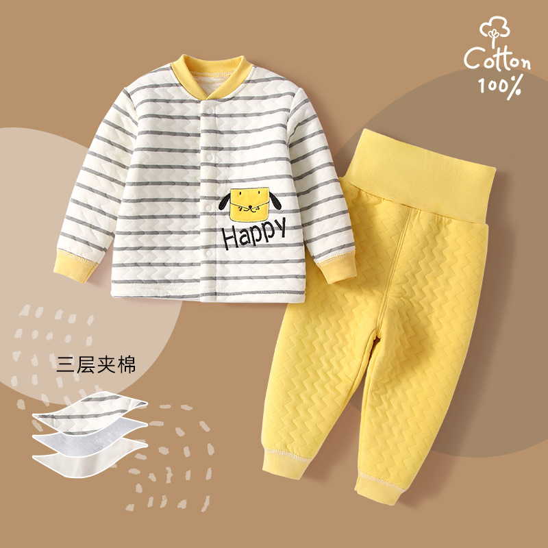 아기의 가을과 겨울 잠옷 세트 아기의 따뜻한 배 보호 하이 웨이스트 2 피스 어린이 두꺼운 누비 이불 속옷 어린이 의류