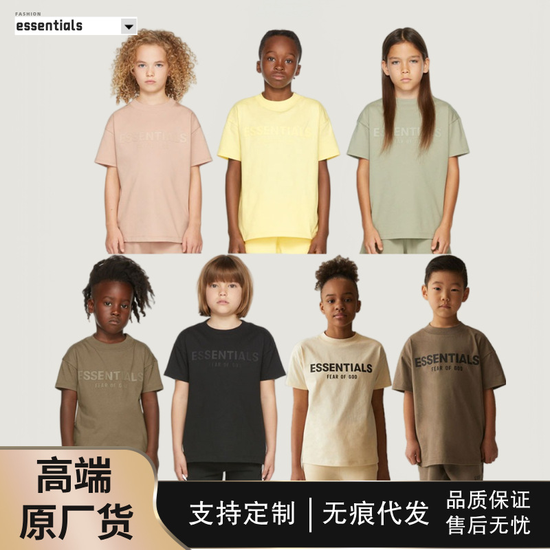ESSENTIALS 아동 의류 인쇄 편지 티셔츠 남성 여성 아동 여름 의류 반팔 탑 만화 인쇄스토어 가기