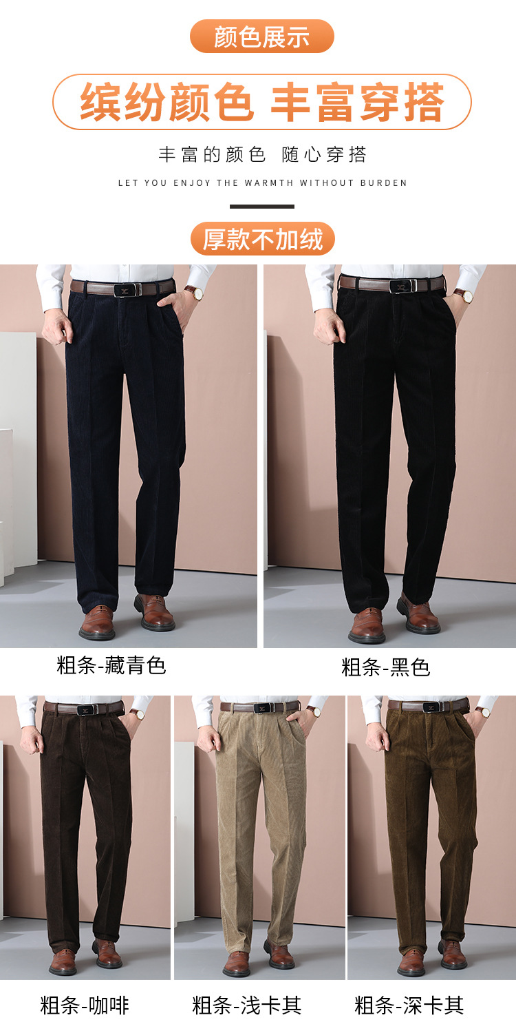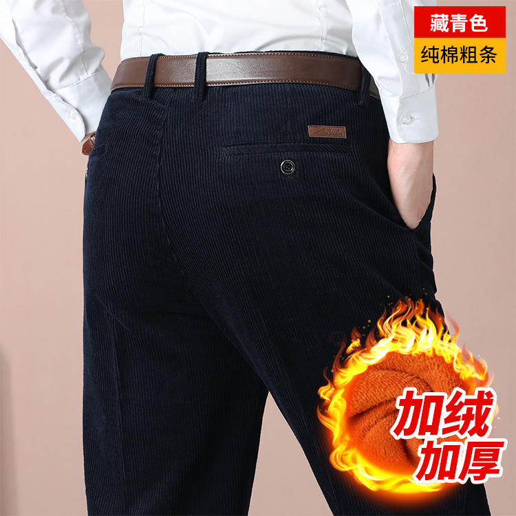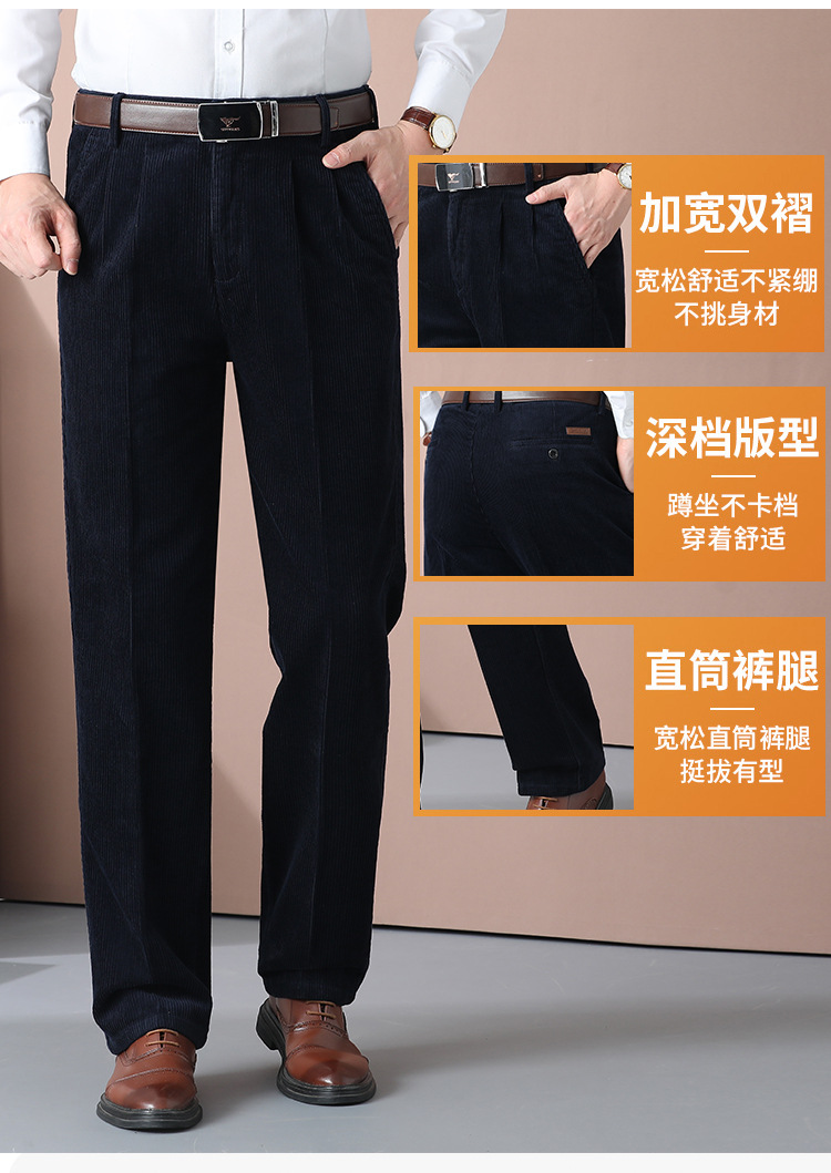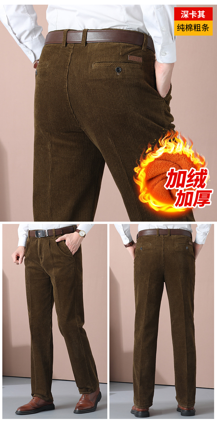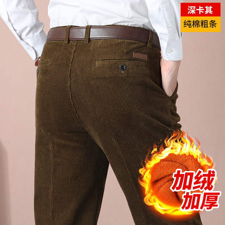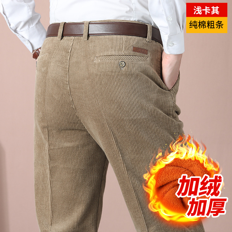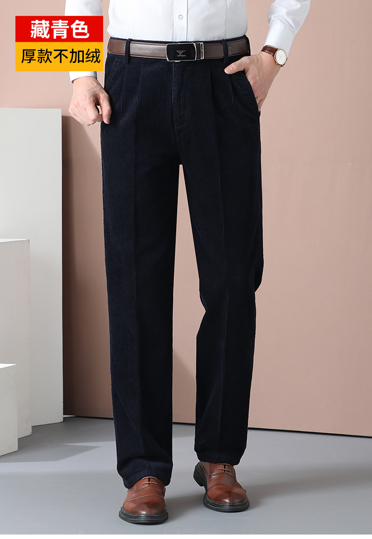 거친 바지 면 코듀로이 남성 바지 가을과 겨울 두꺼운 스트레이트 하이 웨이스트 느슨한 더블 주름 기모 코듀로이 남성 바지스토어 가기
