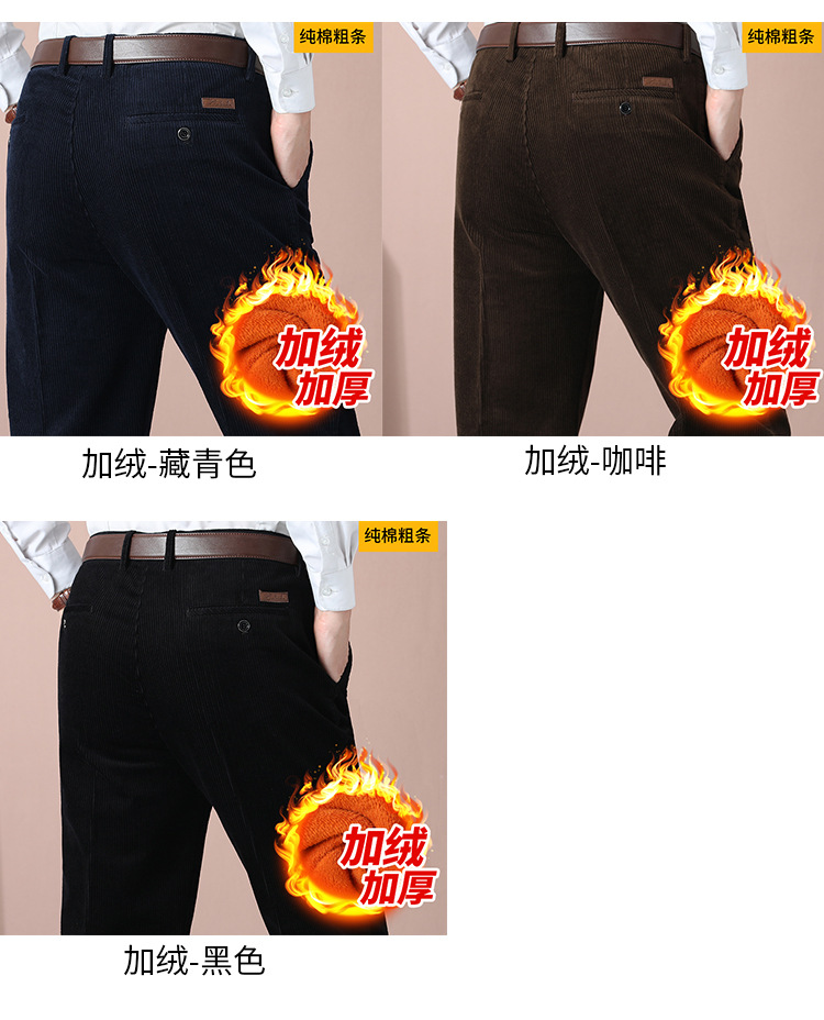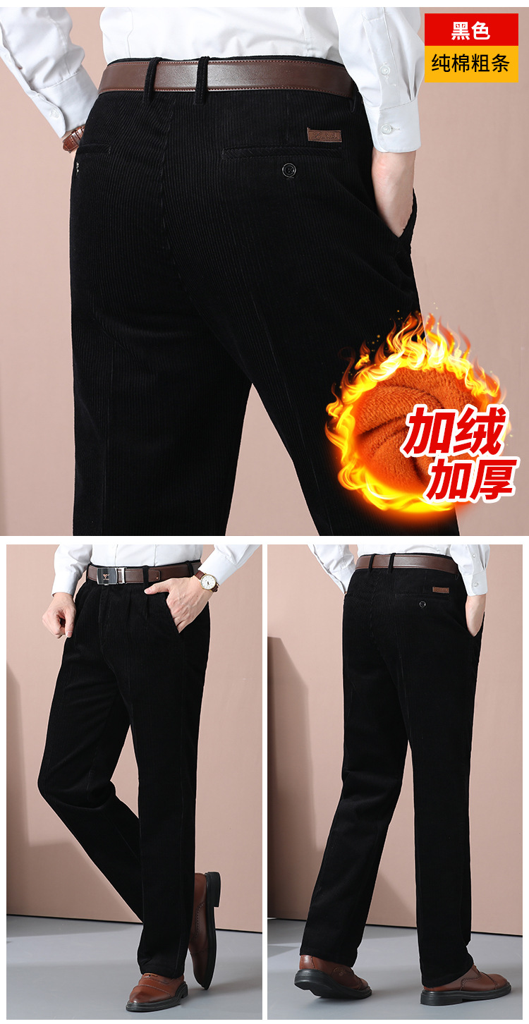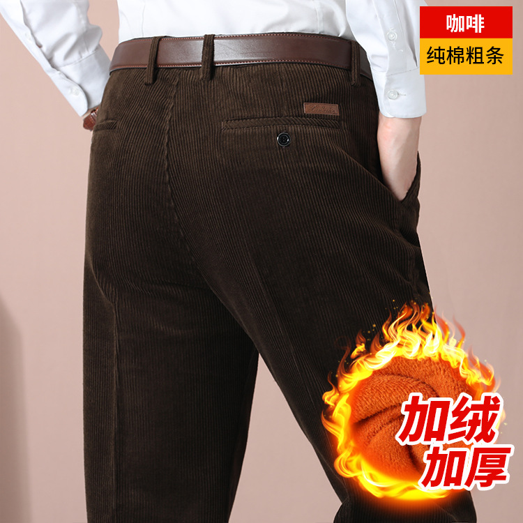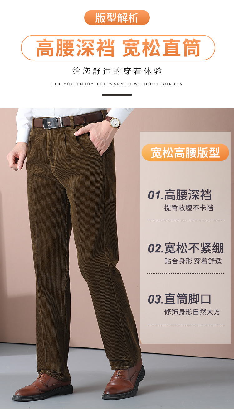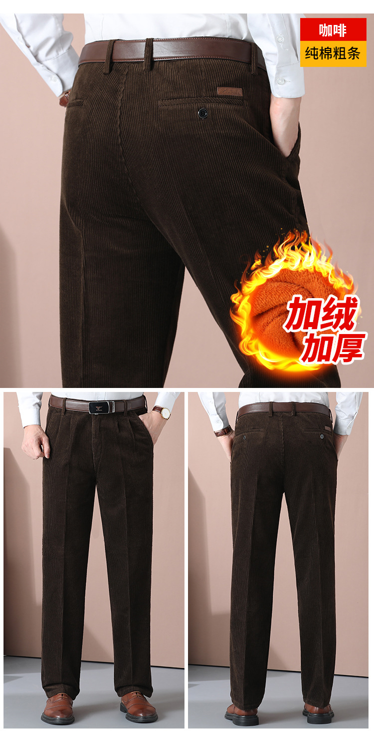 거친 바지 면 코듀로이 남성 바지 가을과 겨울 두꺼운 스트레이트 하이 웨이스트 느슨한 더블 주름 기모 코듀로이 남성 바지스토어 가기