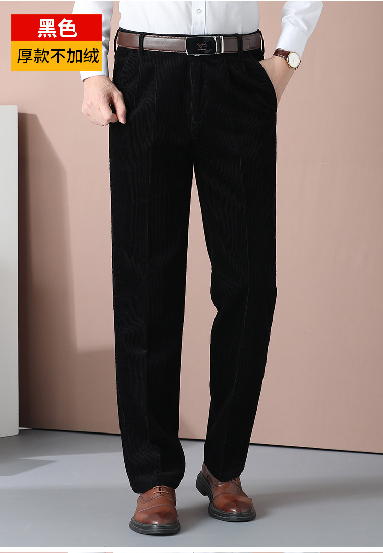 거친 바지 면 코듀로이 남성 바지 가을과 겨울 두꺼운 스트레이트 하이 웨이스트 느슨한 더블 주름 기모 코듀로이 남성 바지