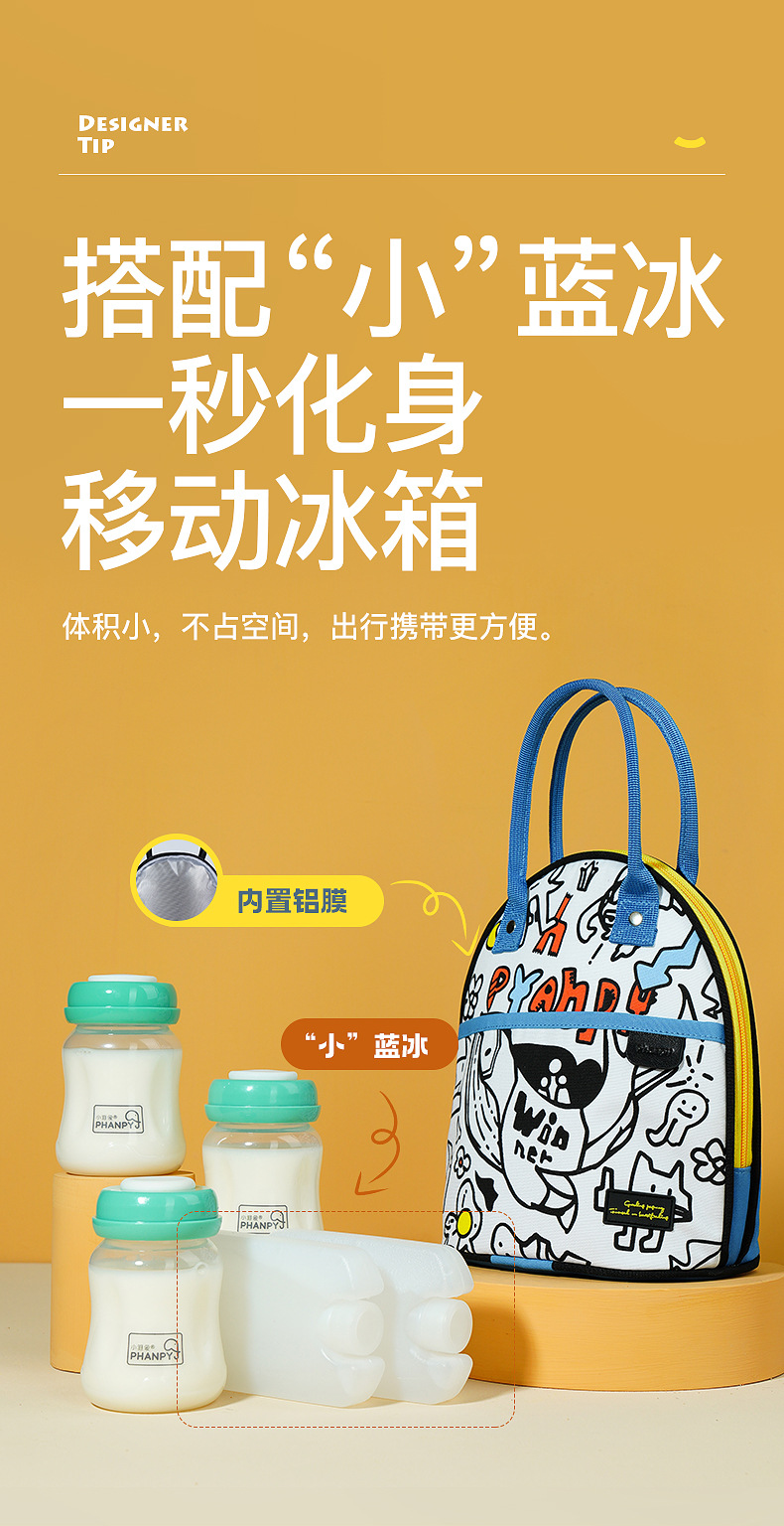 Xiaomi 코끼리 미니 다시 우유 가방 작업 우유 저장 장비 유방 우유 절연 냉동 냉동고 스몰 사이즈 블루 아이스 휴대용 아이스 백