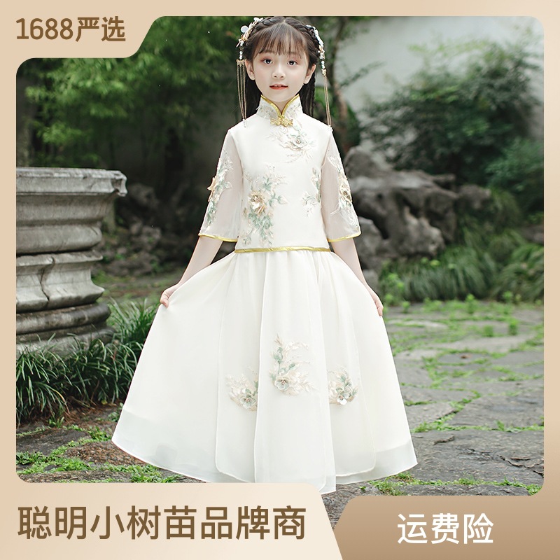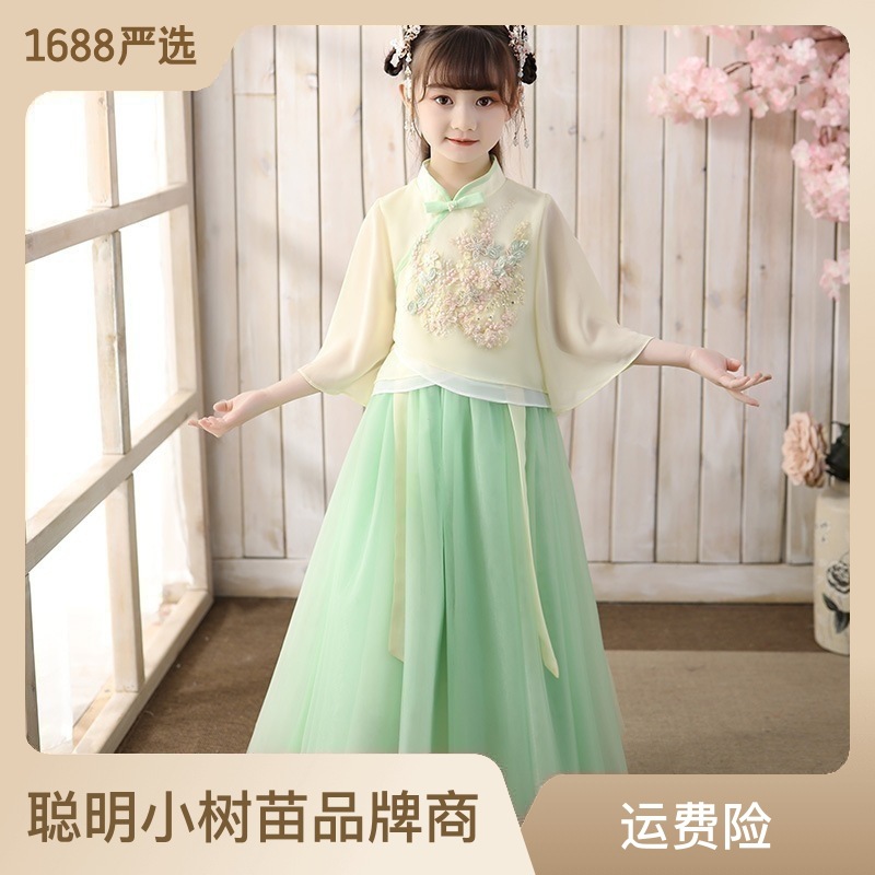 民国风汉服女童秋季古装中国风儿童短袖两件套超仙小女孩唐装夏款