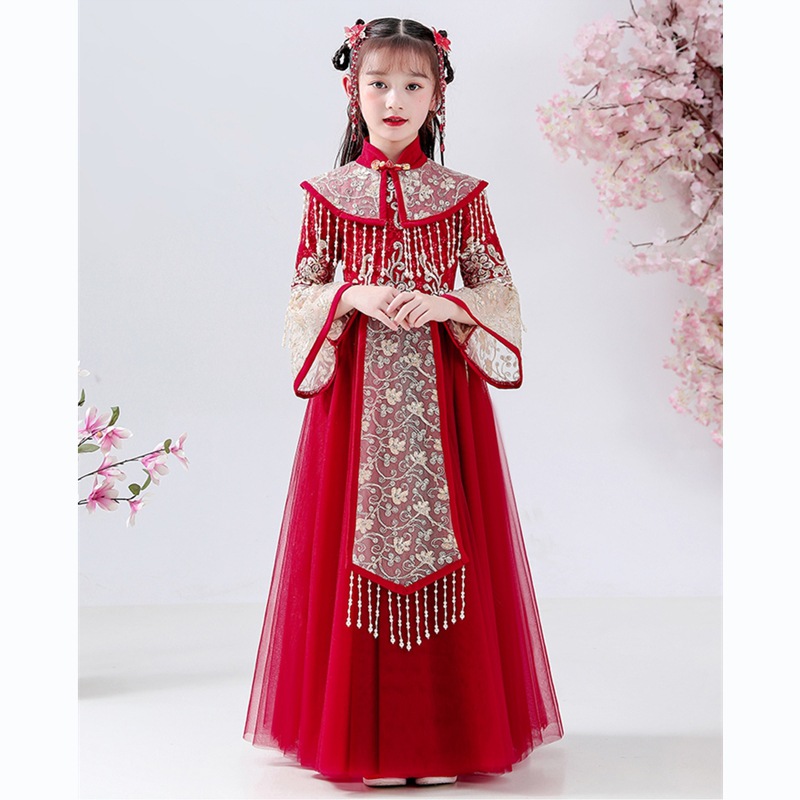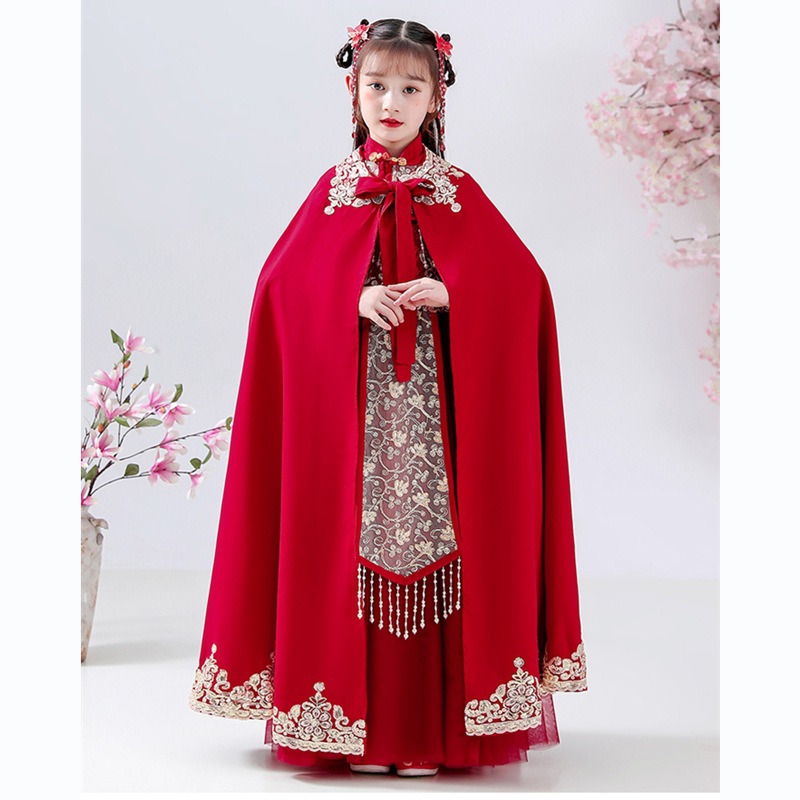 여자 Hanfu 중국 스타일 어린이 골동품 당 세트 슈퍼 요정 원피스 여자의 고대 세트 봄과 가을 겨울 세트