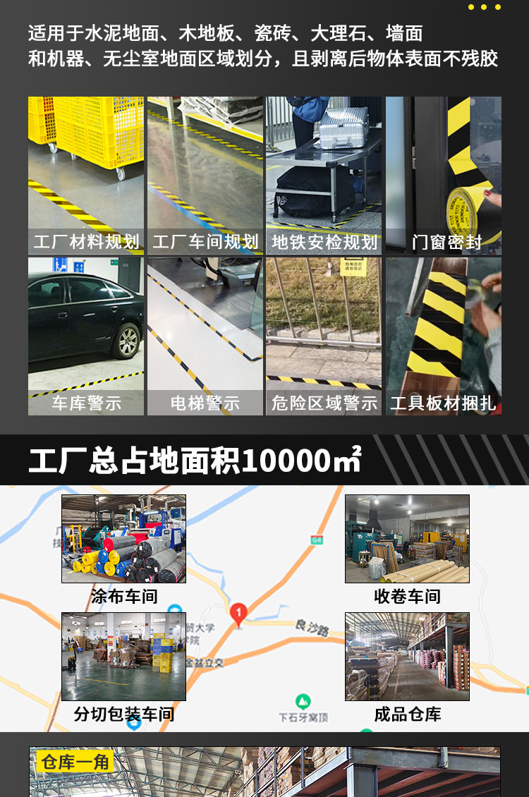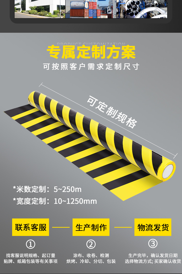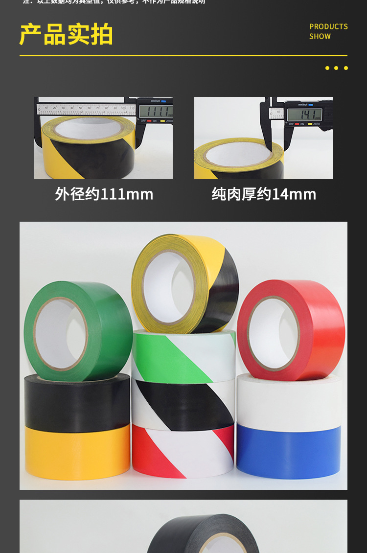 맞춤형 PVC 경고 테이프 검정 황색 33 m 도매 경고 로고 테이프 마킹 얼룩말 테이프스토어 가기
