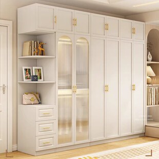 法式白色实木衣柜家用卧室现代简约轻奢奶油风带玻璃门儿童大衣橱
