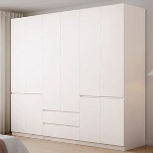 白色纯实木衣柜家用卧室一门到顶大容量挂衣柜免拉手多功能大衣柜