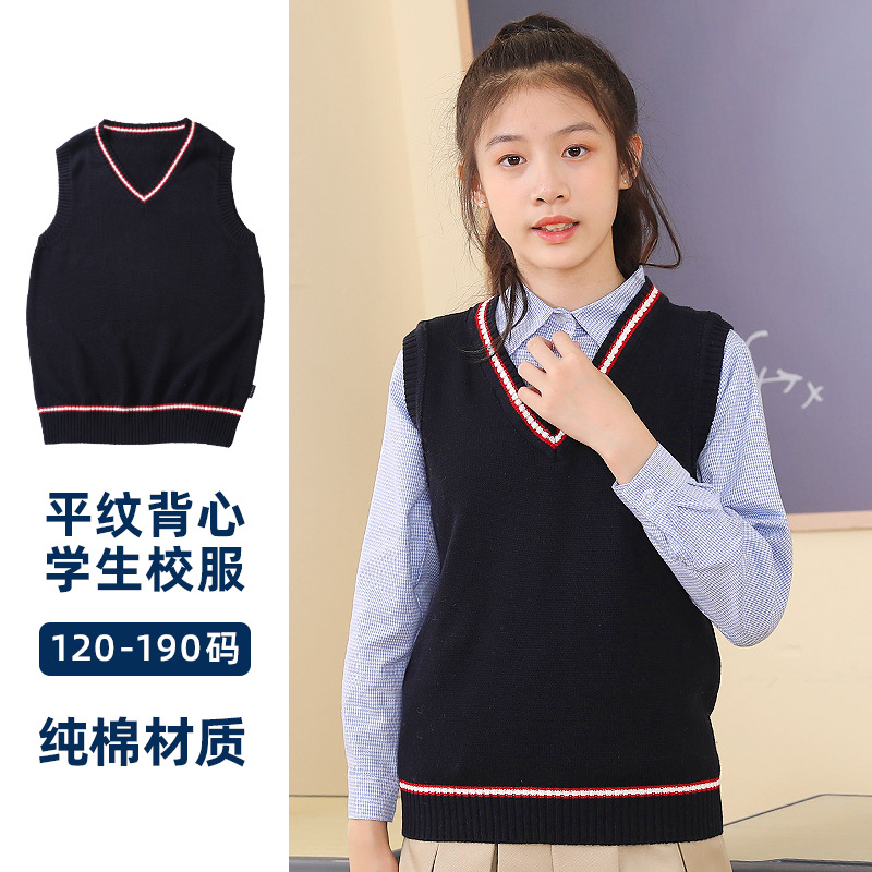 어린이 니트 조끼 남학생과 여학생 교복 스웨터 초등 및 중등 학생 조끼 대학 봄과 가을 V 칼라 머리카락 세대