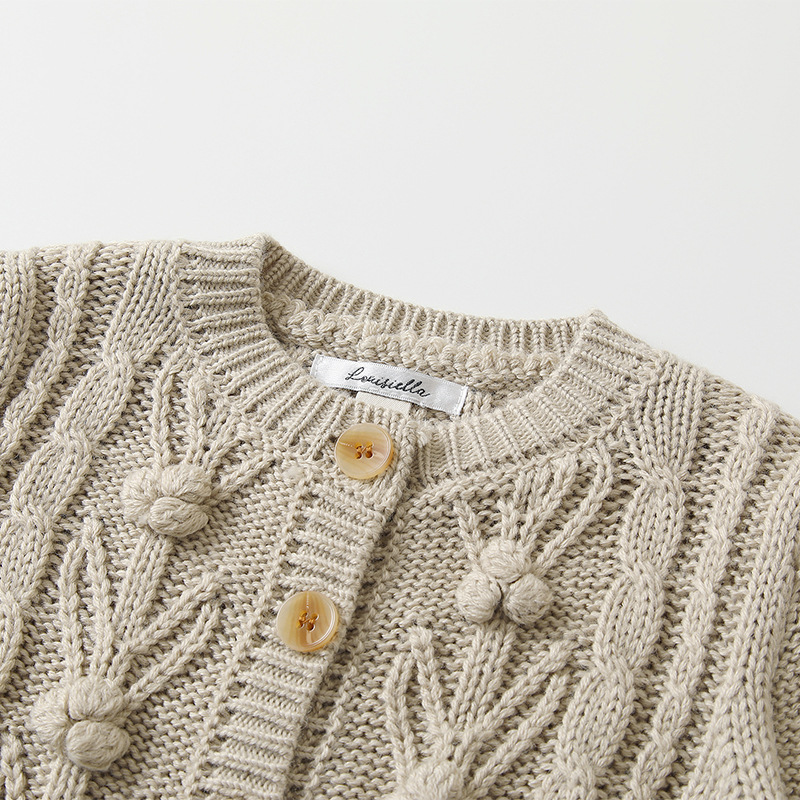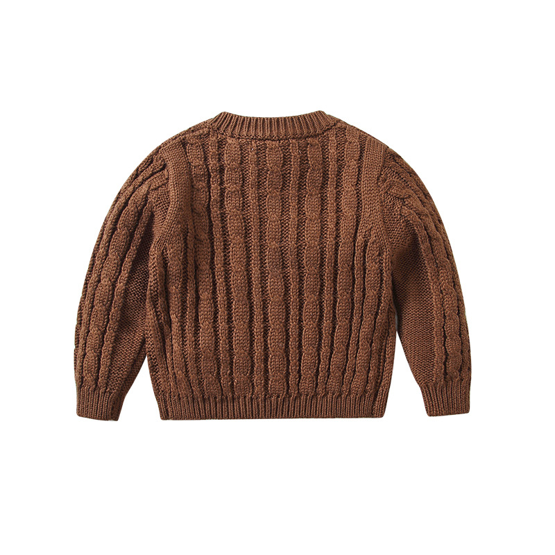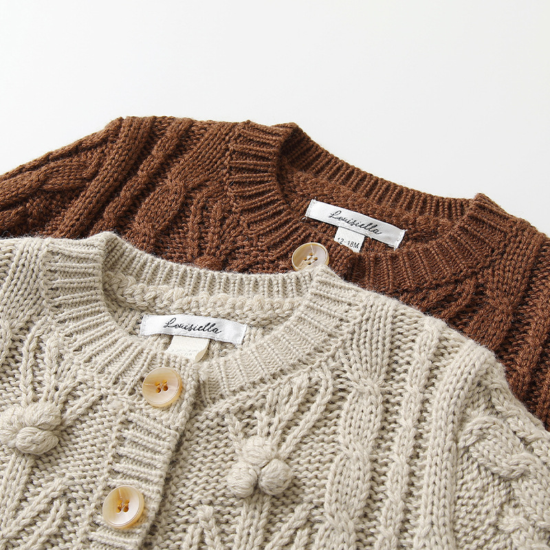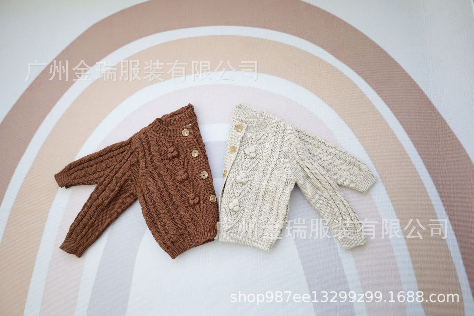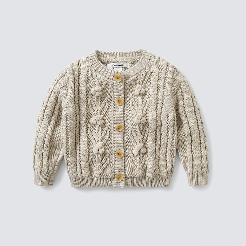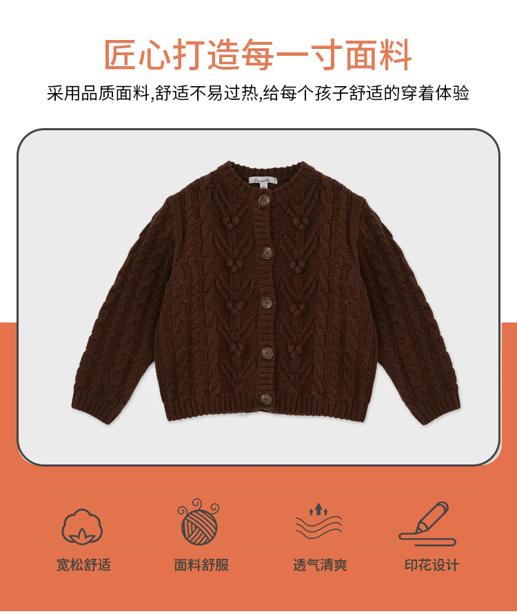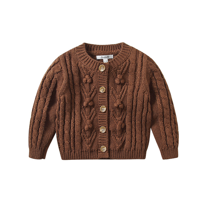 재고 in 어린이 다크 브라운 볼 스웨터 울 스웨터 코트 긴 소매 두꺼운 따뜻한 탑 카디건 가을과 겨울