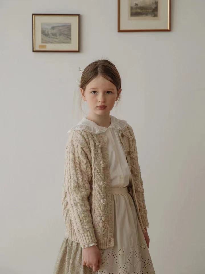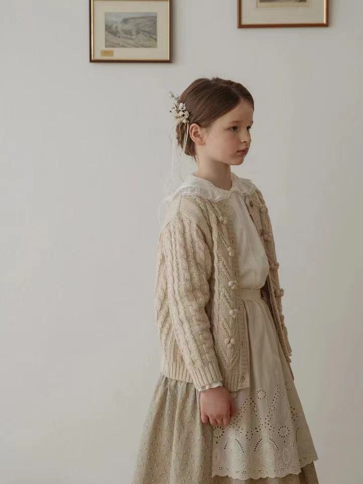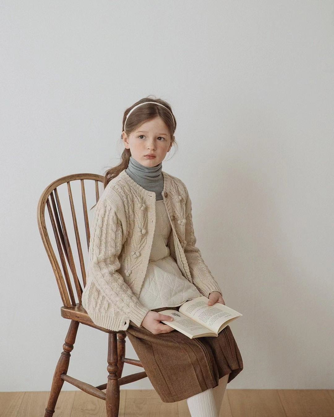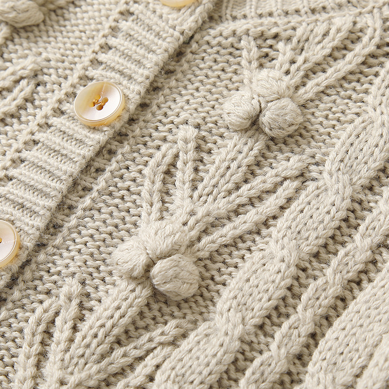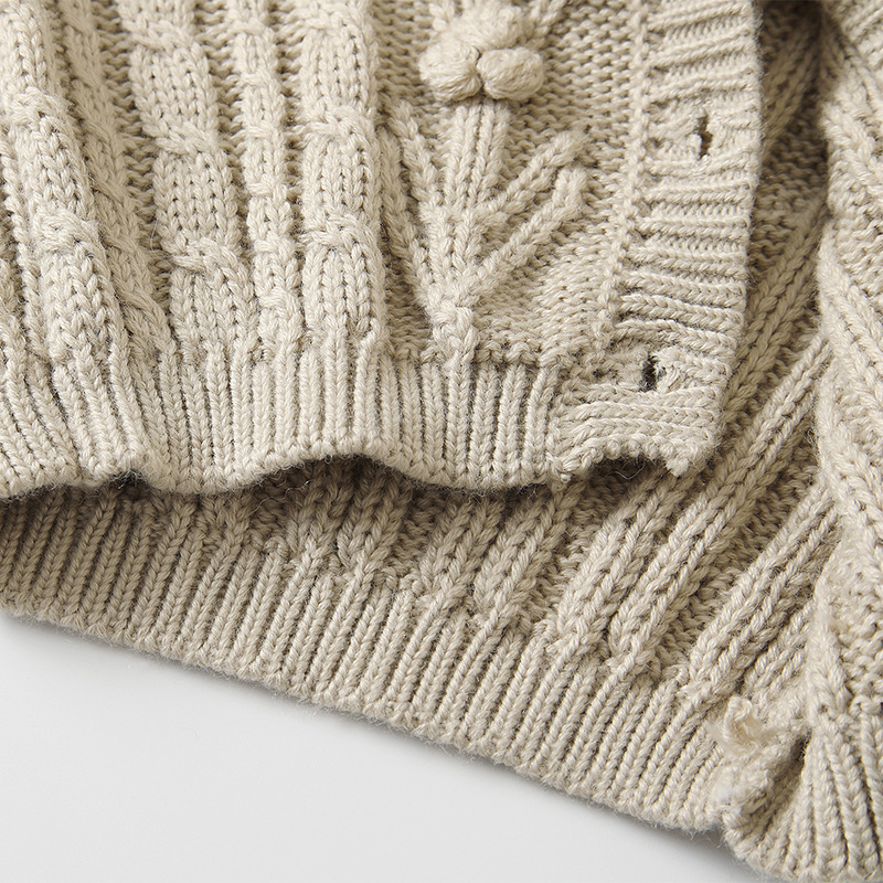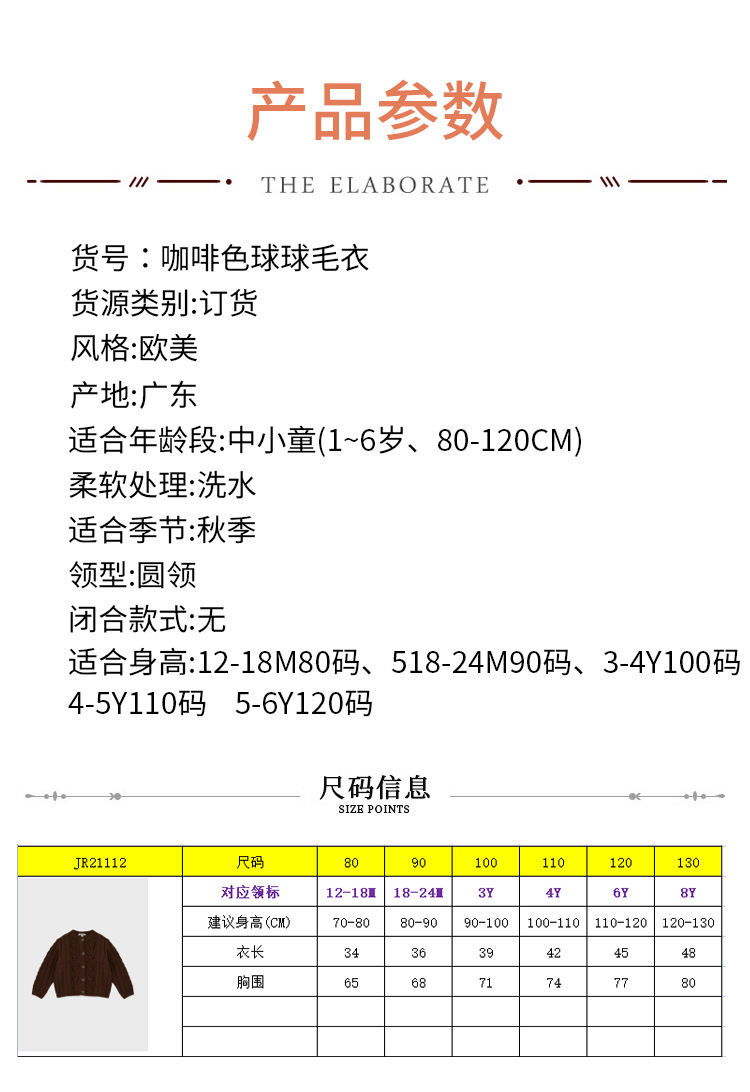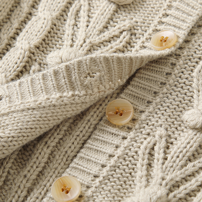 재고 in 어린이 다크 브라운 볼 스웨터 울 스웨터 코트 긴 소매 두꺼운 따뜻한 탑 카디건 가을과 겨울