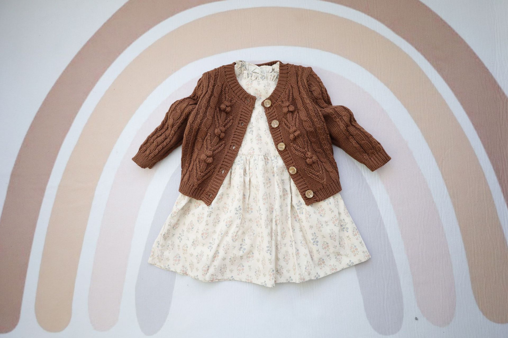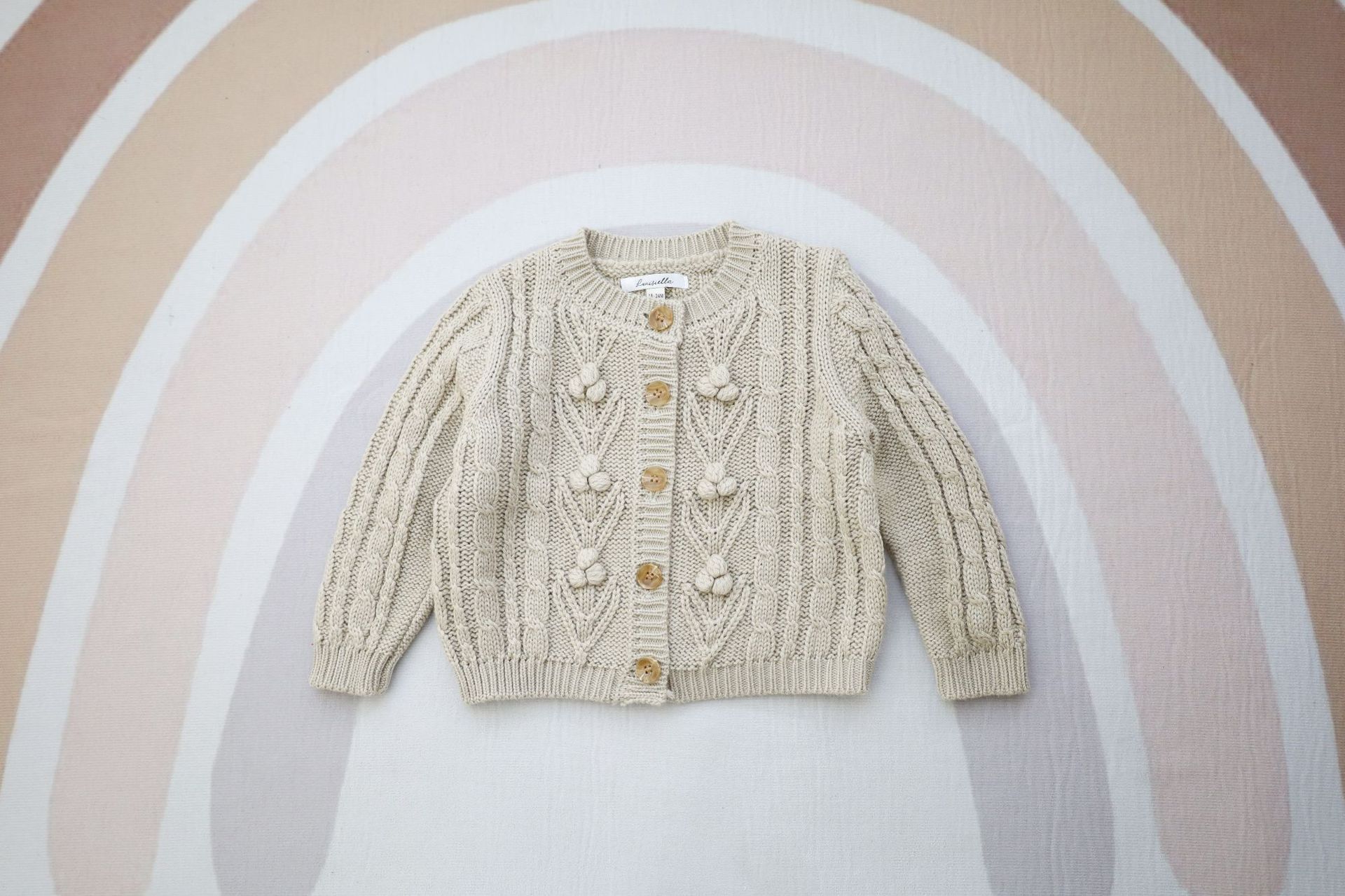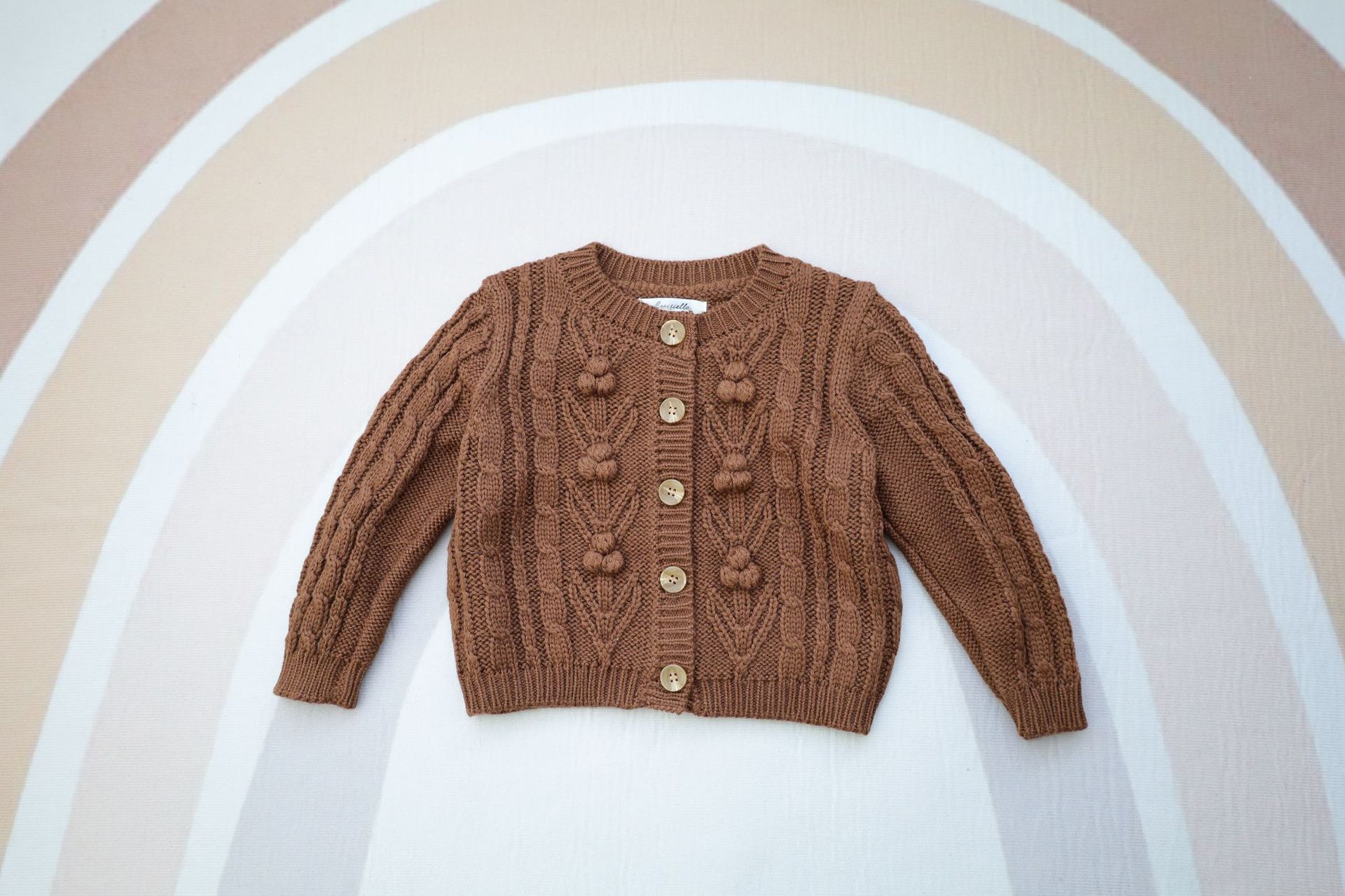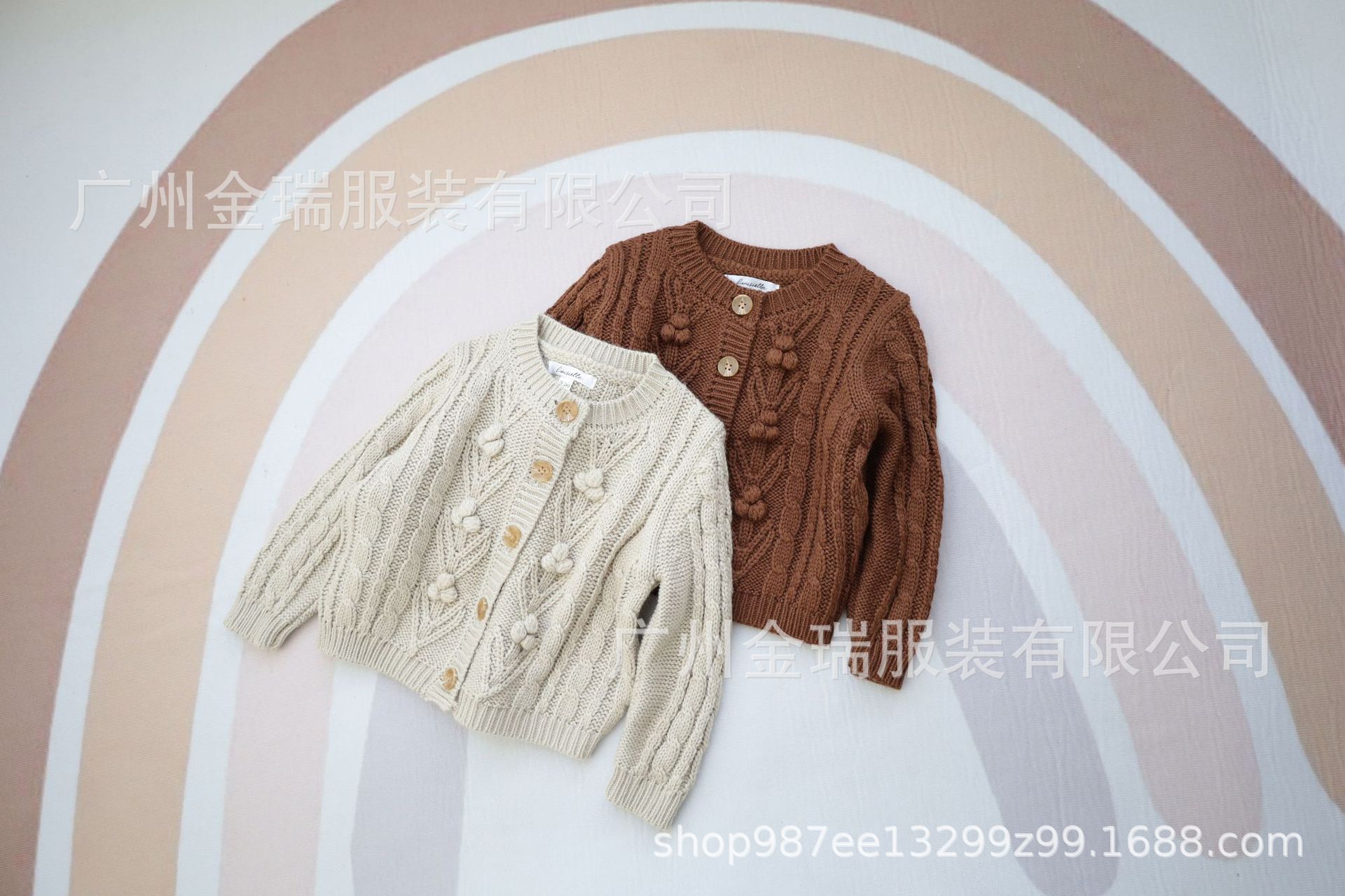 재고 in 어린이 다크 브라운 볼 스웨터 울 스웨터 코트 긴 소매 두꺼운 따뜻한 탑 카디건 가을과 겨울