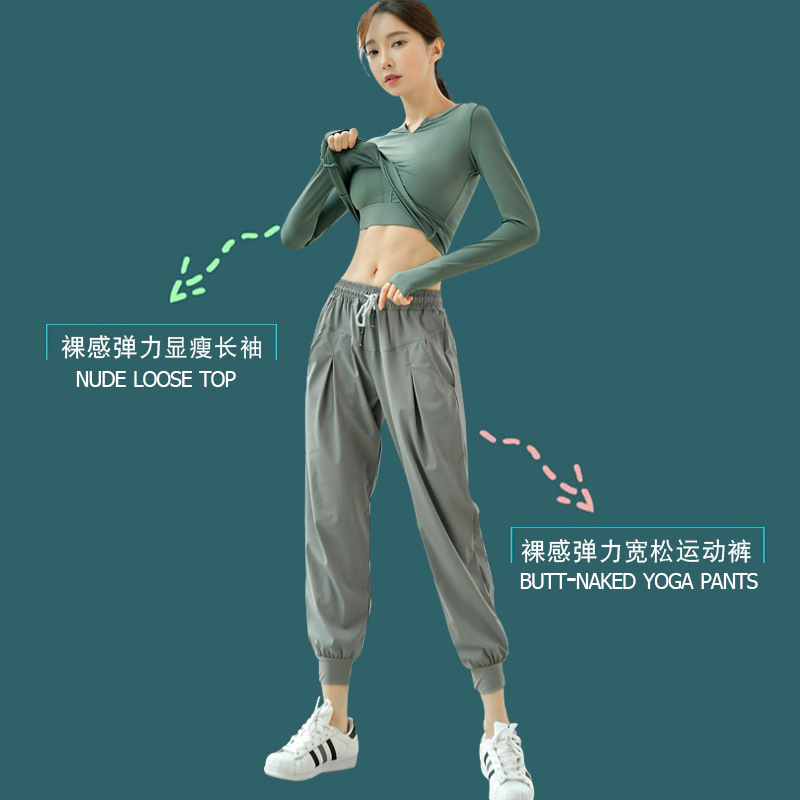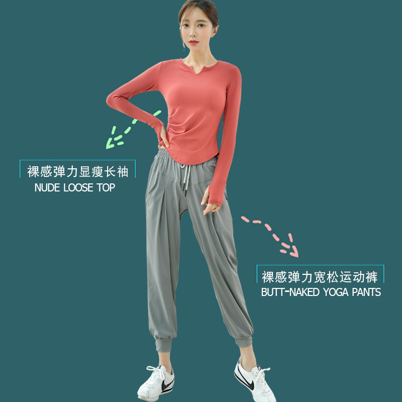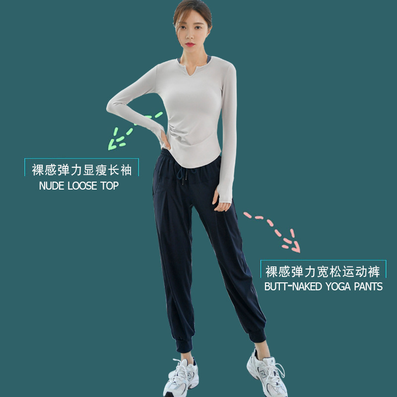 피트니스 의류 여성의 최고 봄과 가을 전문 고급 패션 요가 티셔츠 타이트 바디 슬리밍 러닝 스포츠 긴팔 세트스토어 가기