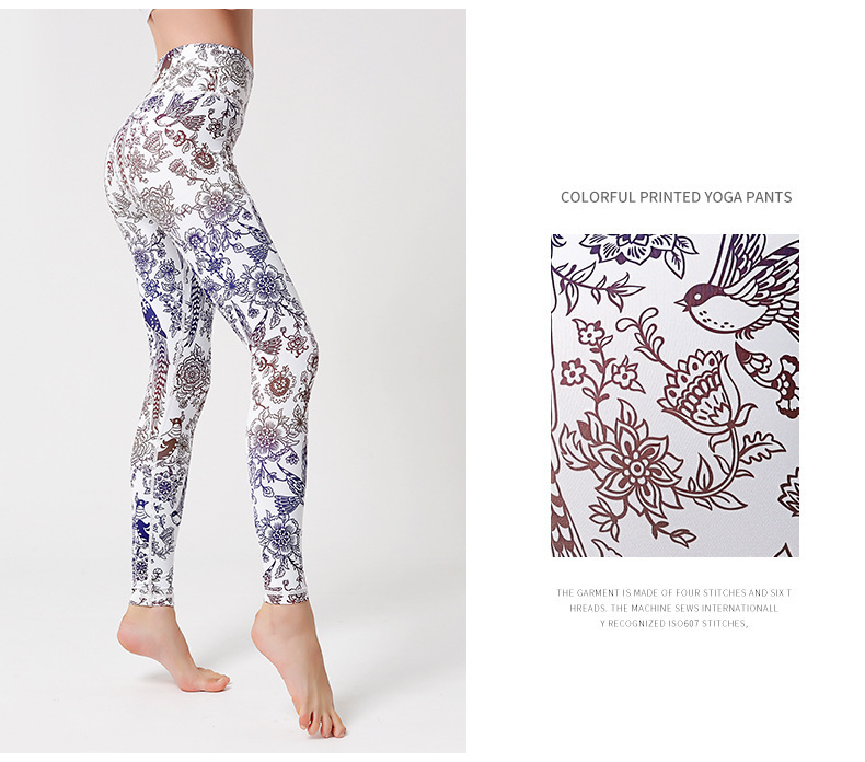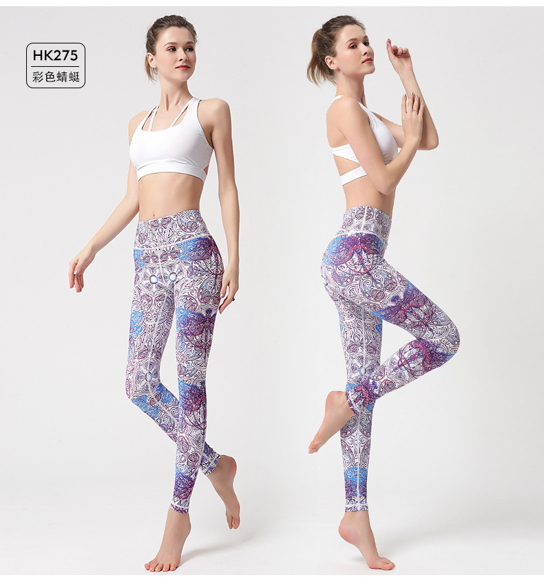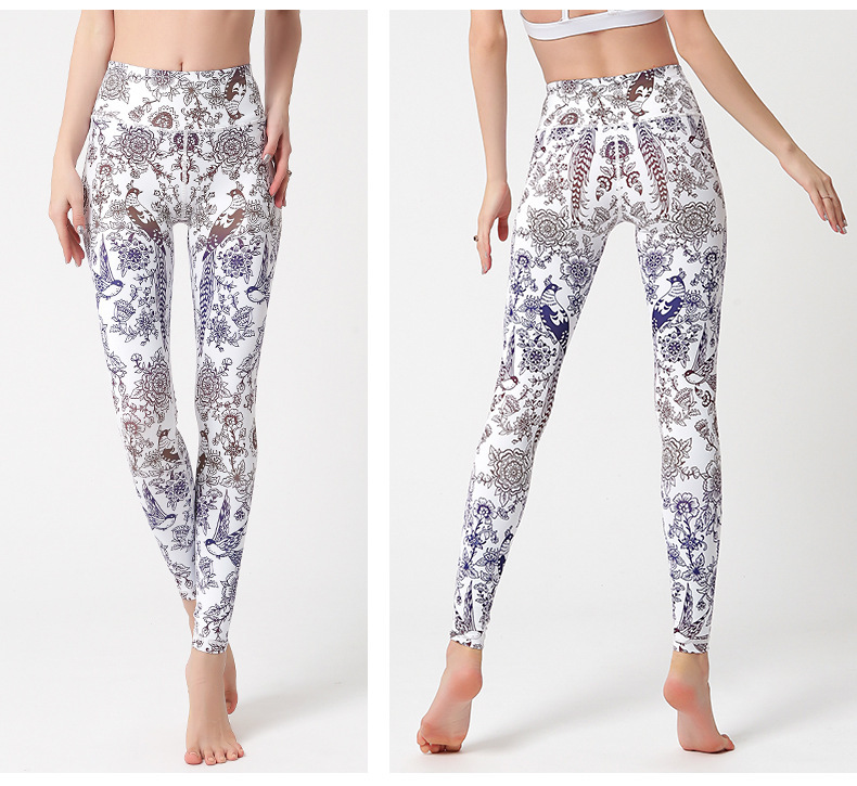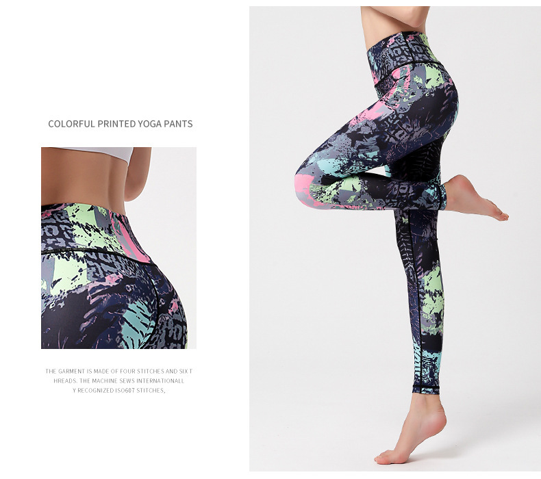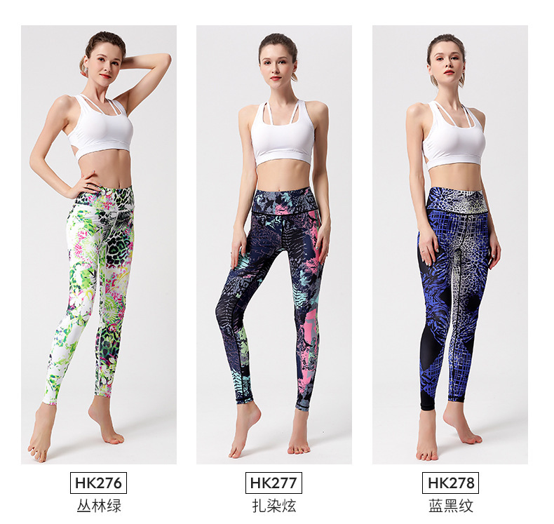 국경 간 뜨거운 판매 인쇄 요가 바지 여성의 꽉 높은 허리 엉덩이 리프팅 레깅스 높은 탄성 통기성 피트니스 스포츠 스타킹