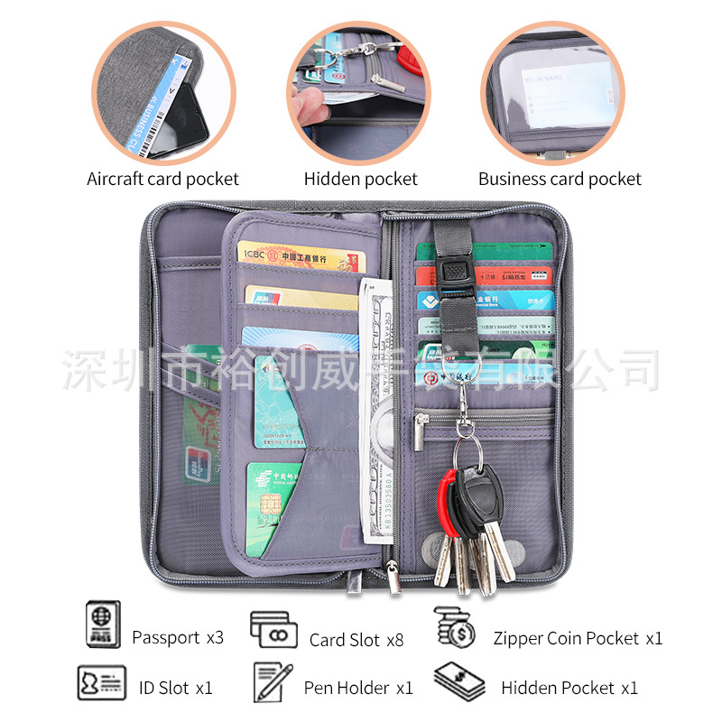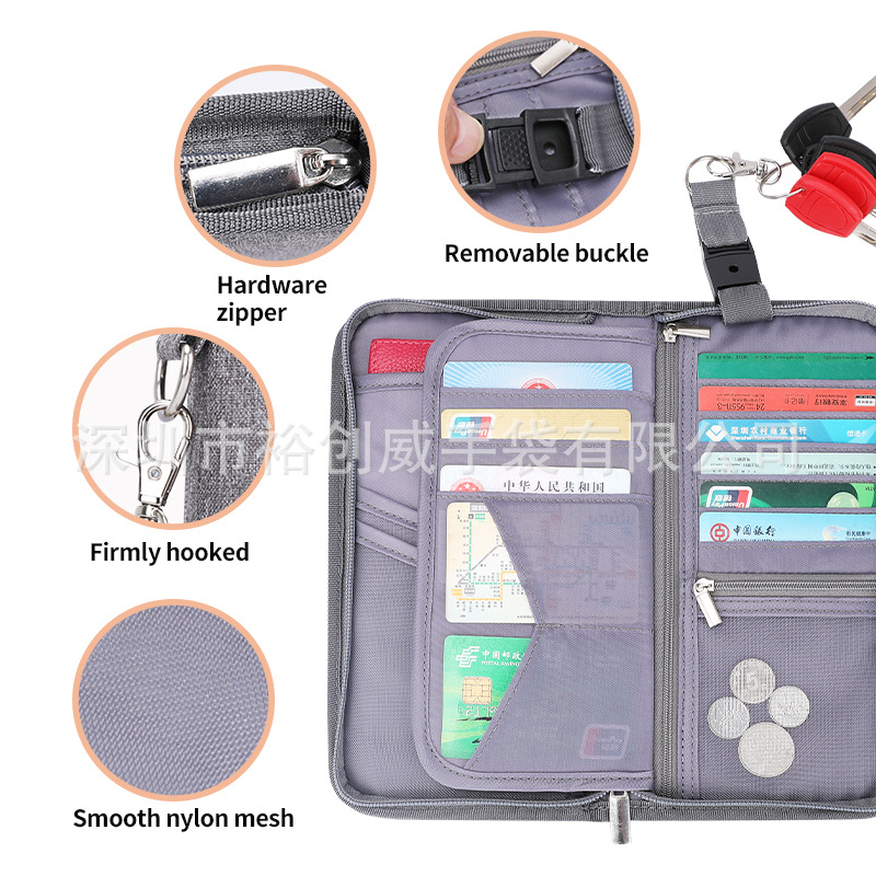 BSCI 공장 도매 다기능 RFID 도난 방지 여권 ID 가방 여행 티켓 지갑 보관 가방 ID 카드 가방