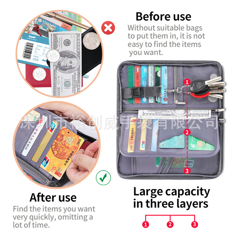 BSCI 공장 도매 다기능 RFID 도난 방지 여권 ID 가방 여행 티켓 지갑 보관 가방 ID 카드 가방스토어 가기