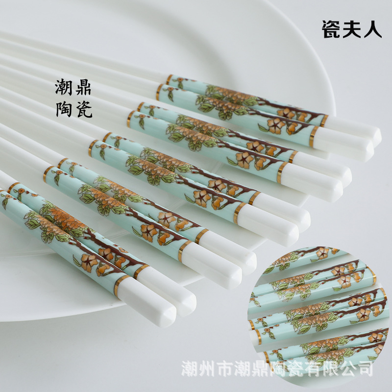 중국식 가정용 세라믹 젓가락, 곰팡이가 생기지 않고, 세척이 용이하며, 고온에서도 변형되지 않고, 고온 살균이 가능한 식기용 젓가락입니다.