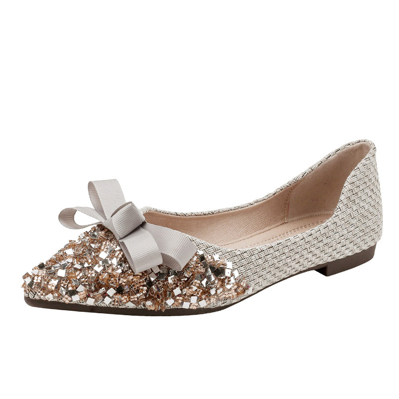뾰족한 발가락 싱글 레이어 슈즈 여성용 2023 봄/가을 새로운 모든 매치 한국 스타일 샤넬 스타일 짠 활 플러스 사이즈 플랫 슈즈 여성용스토어 가기