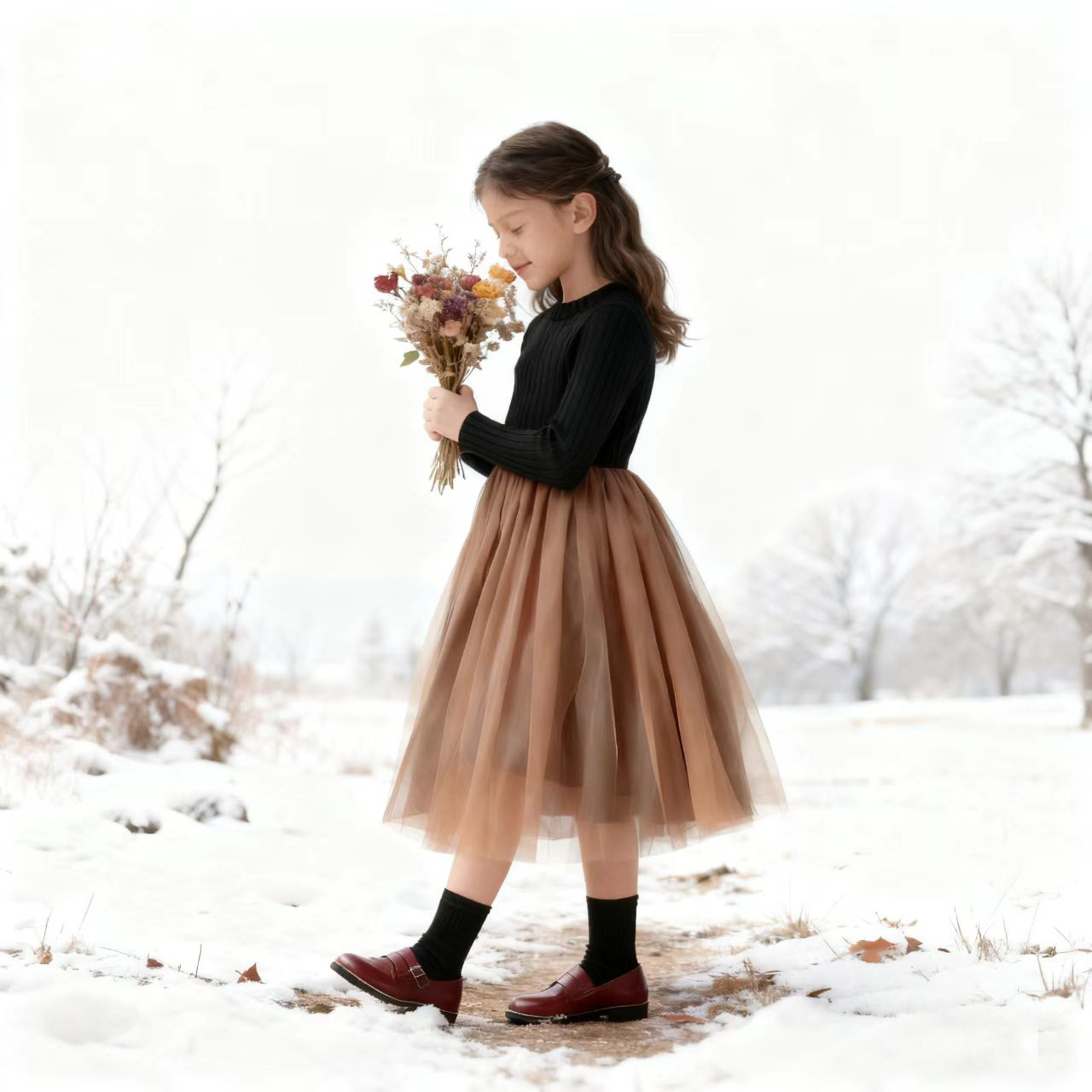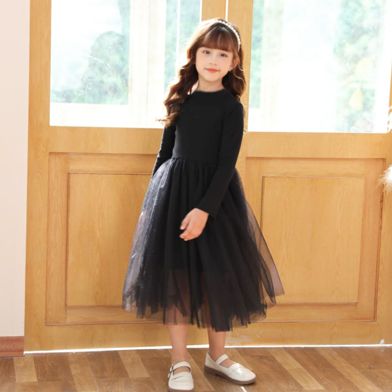 아동복 원피스 메쉬 슬림핏 가을과 겨울 우아한 여아 긴팔 면 스커트 어린이 한국 대외 무역 의류