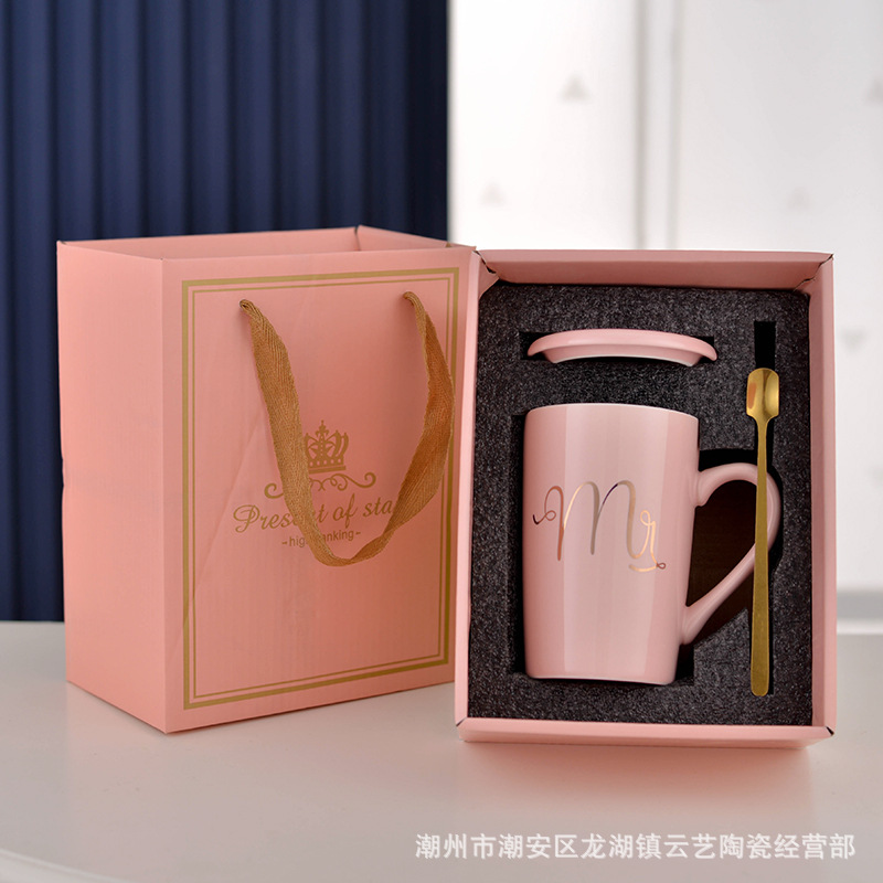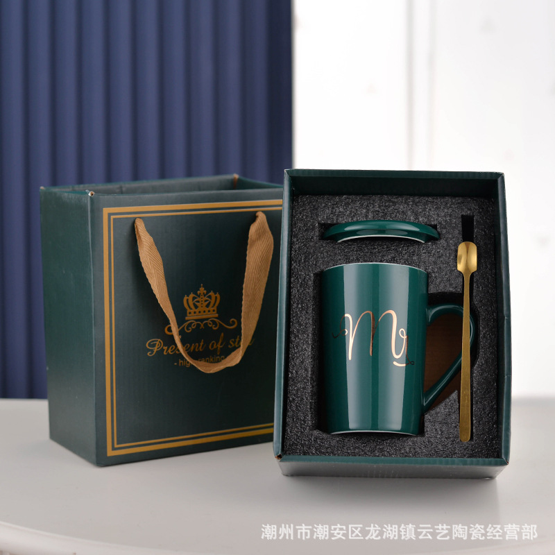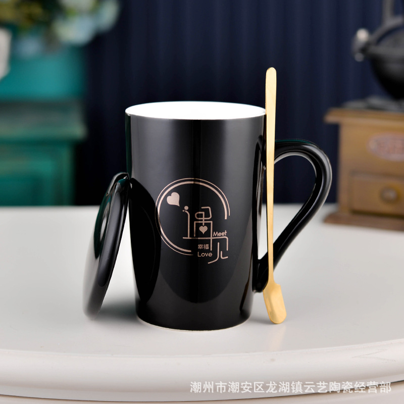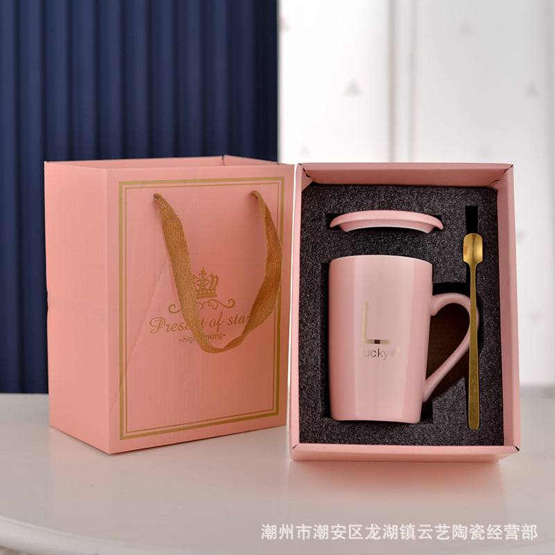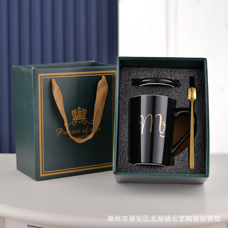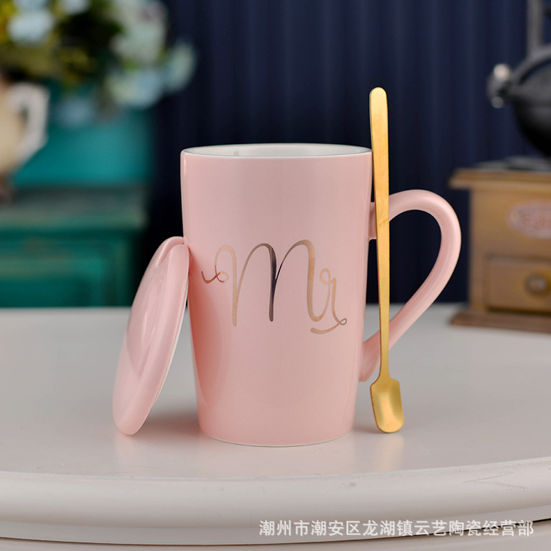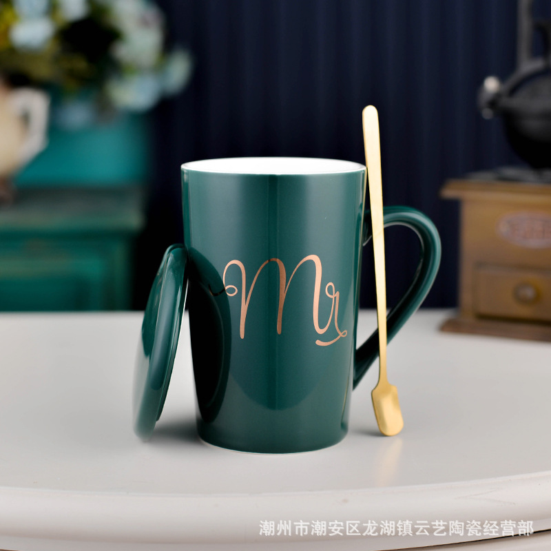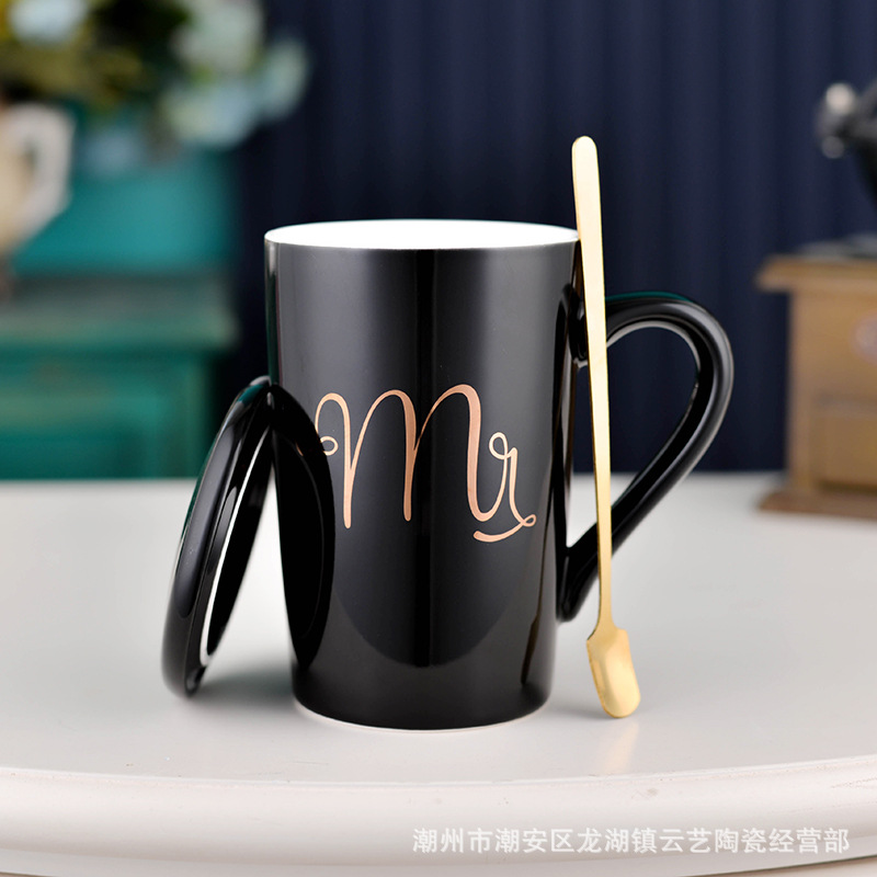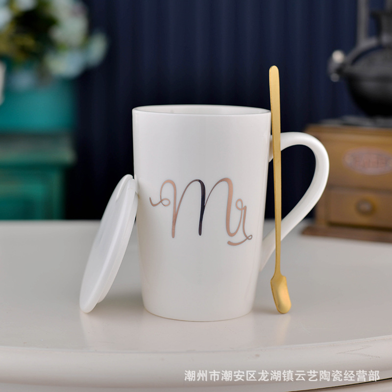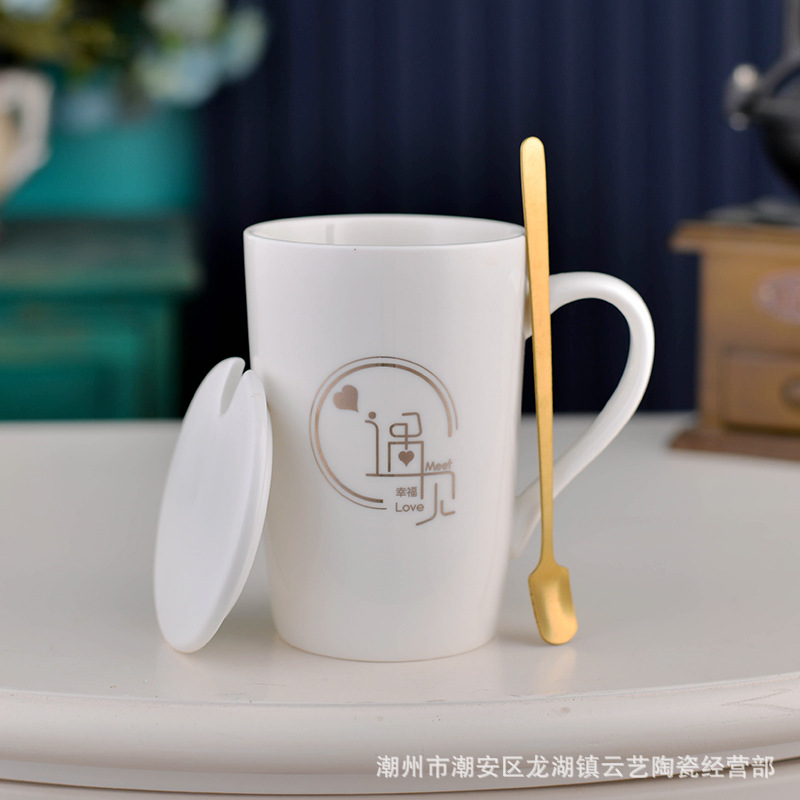 뚜껑과 숟가락 세라믹 머그 머그와 창조적 인 편지 커플을위한 패션 결혼 선물 홈 인쇄 로고 동반 선물