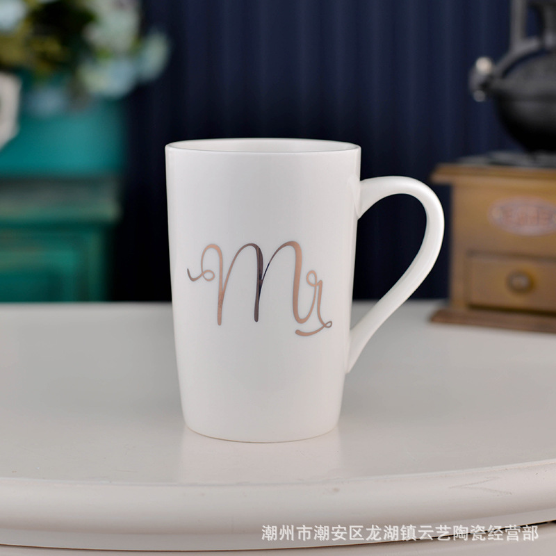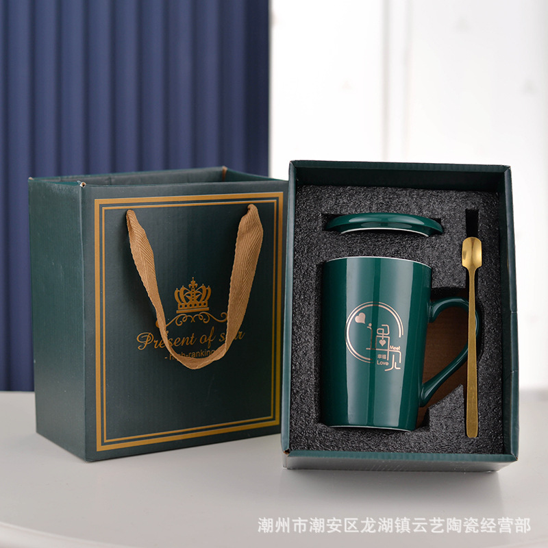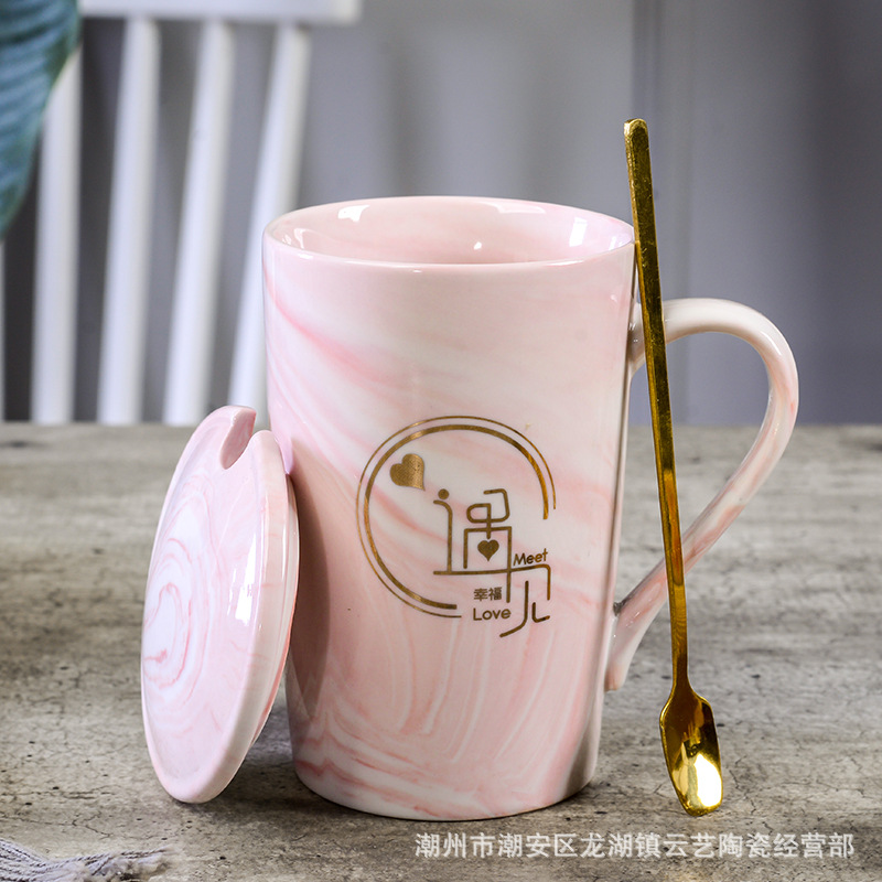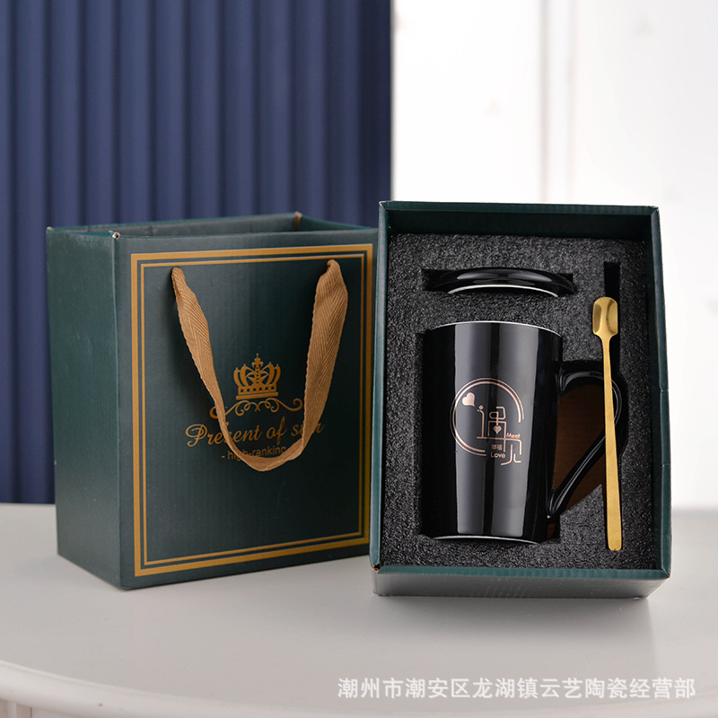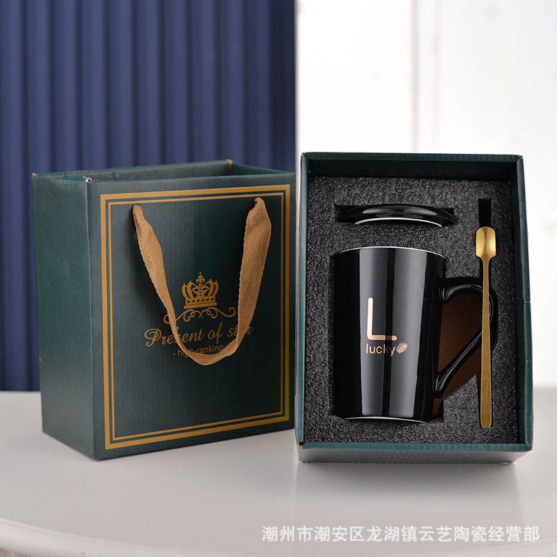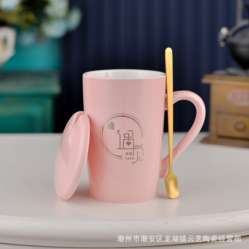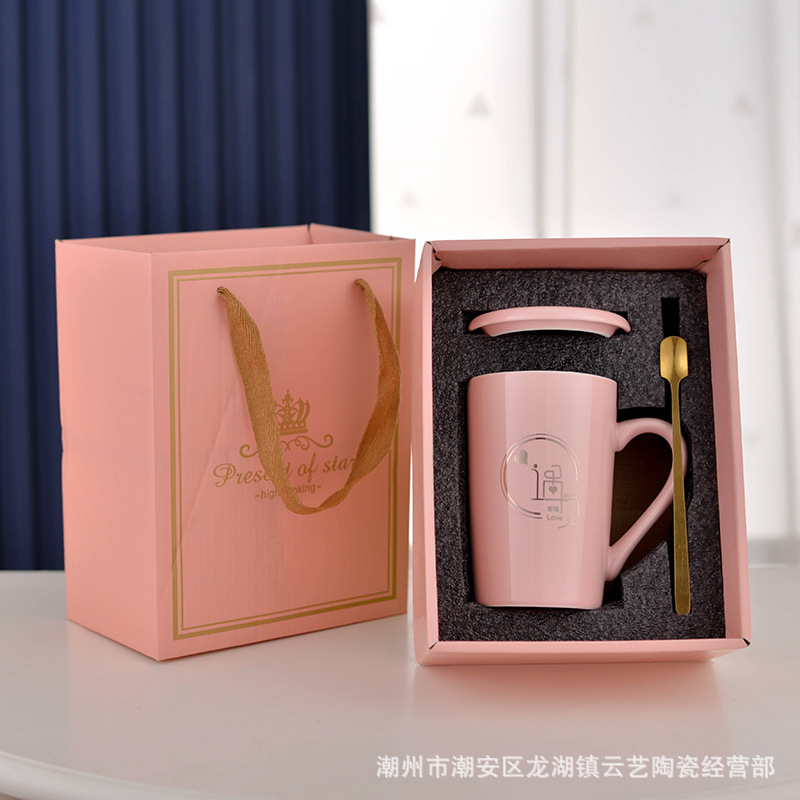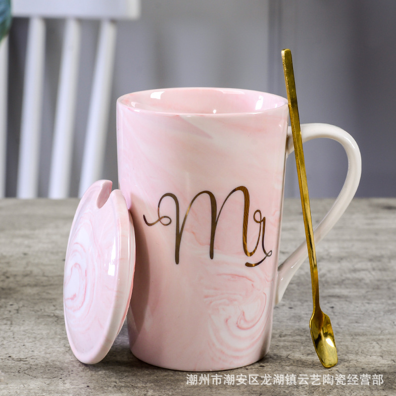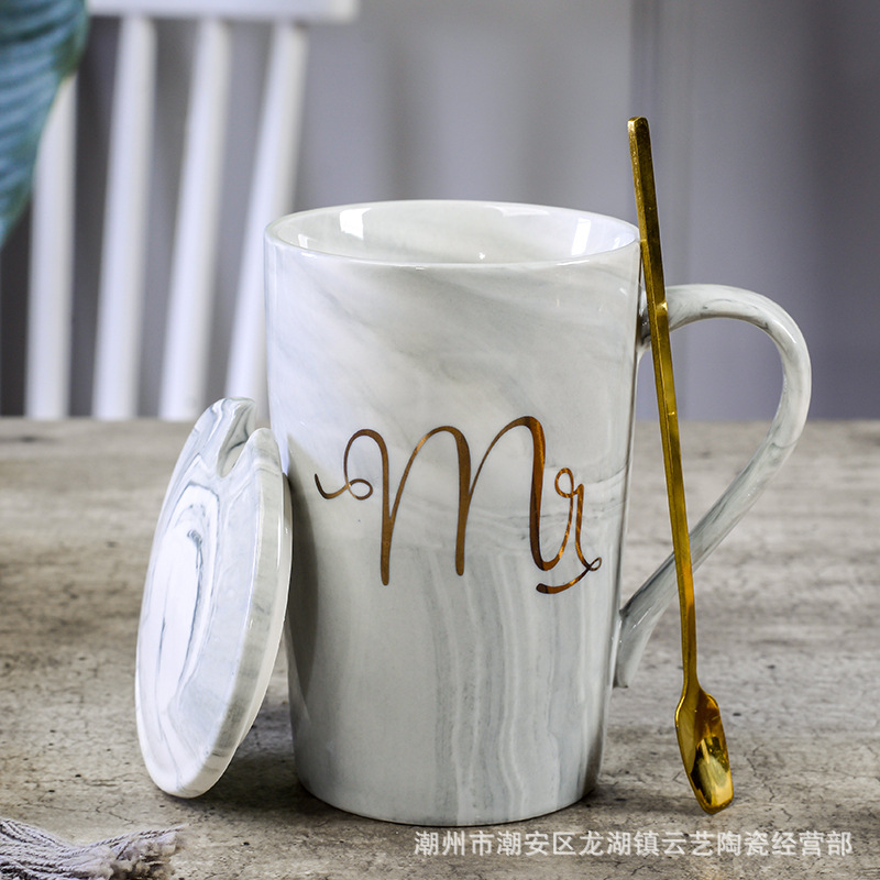 뚜껑과 숟가락 세라믹 머그 머그와 창조적 인 편지 커플을위한 패션 결혼 선물 홈 인쇄 로고 동반 선물