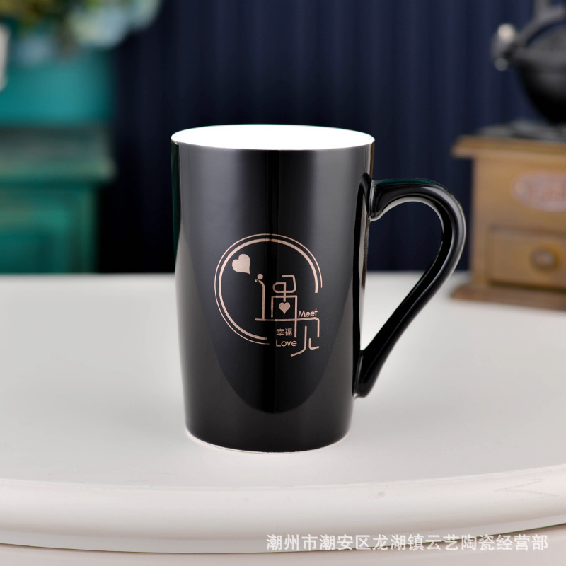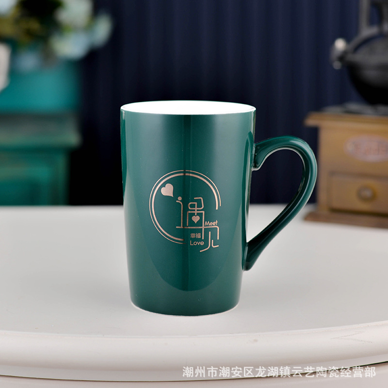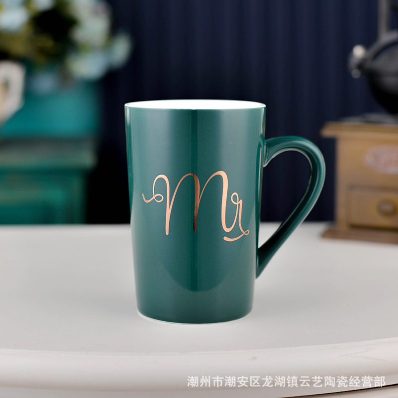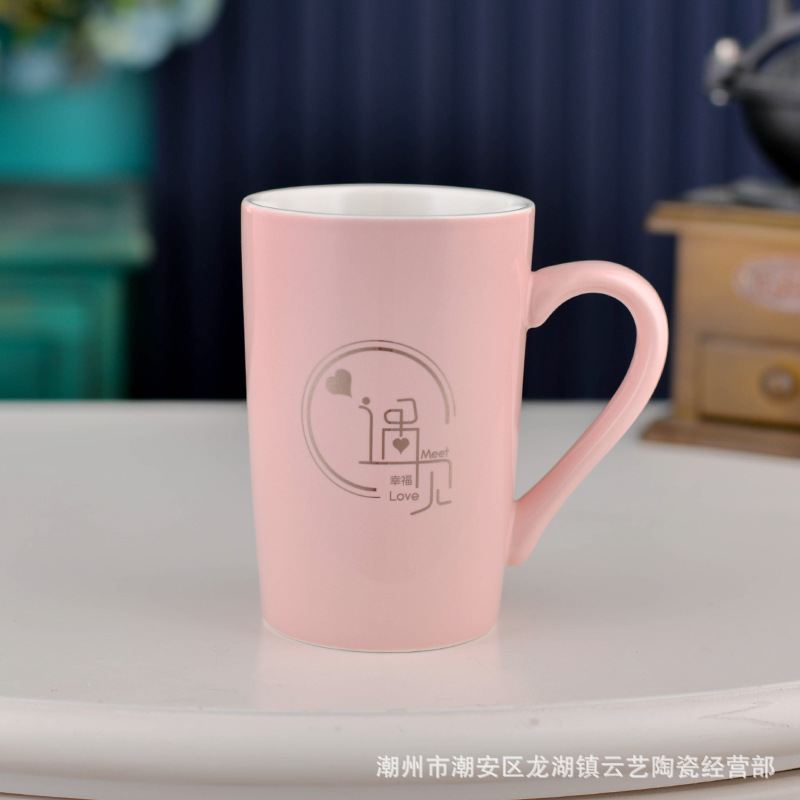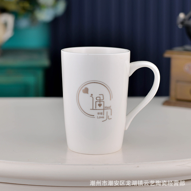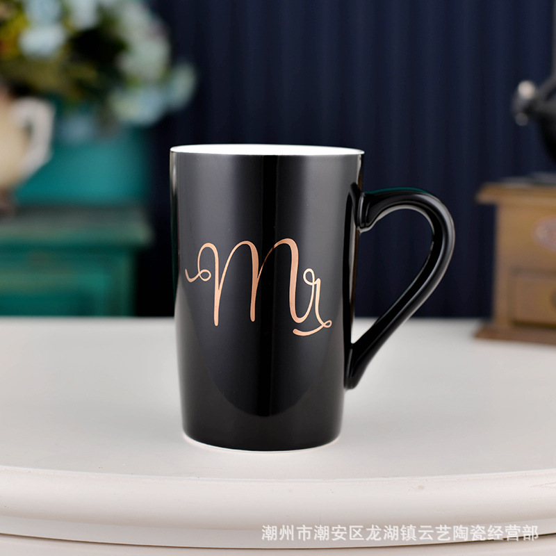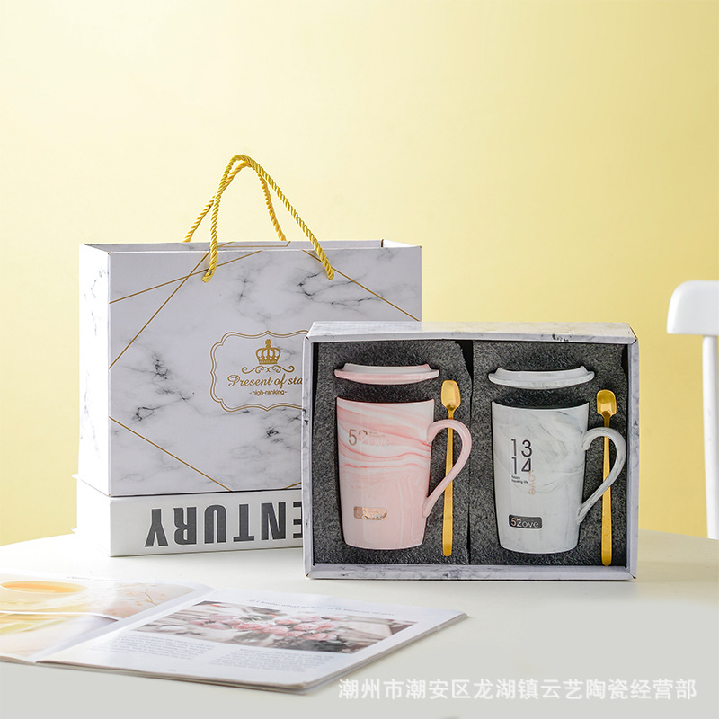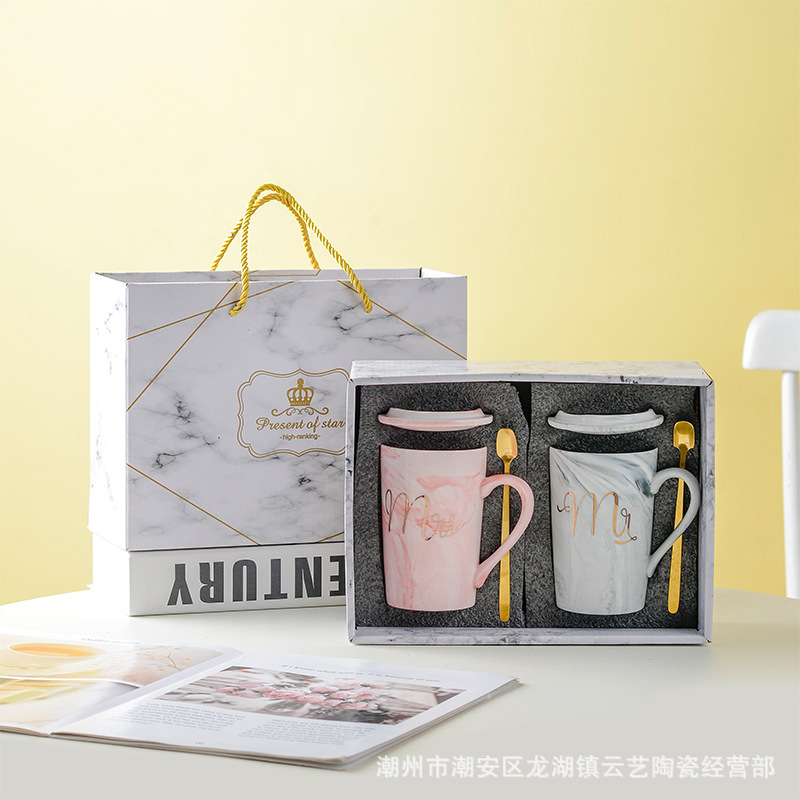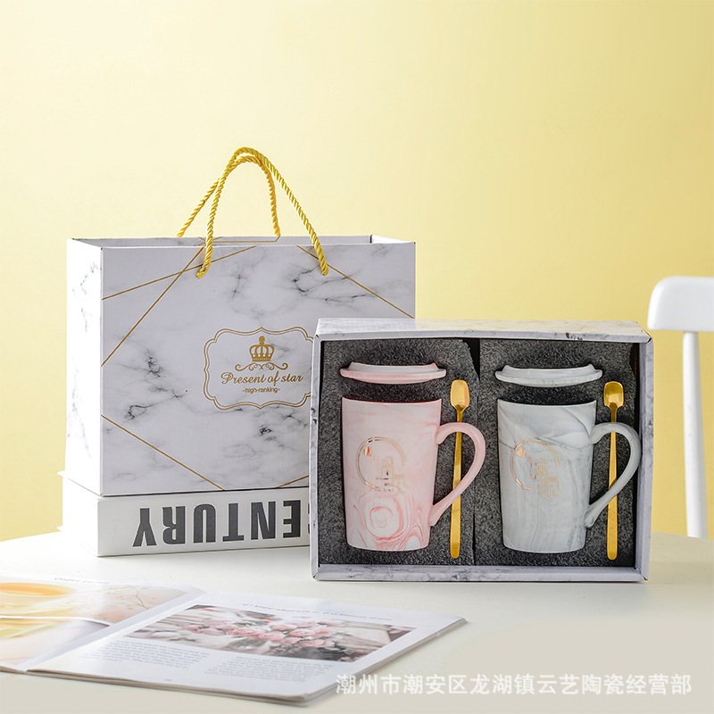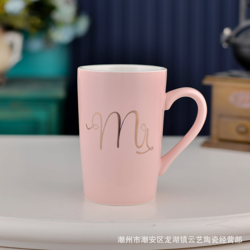 뚜껑과 숟가락 세라믹 머그 머그와 창조적 인 편지 커플을위한 패션 결혼 선물 홈 인쇄 로고 동반 선물
