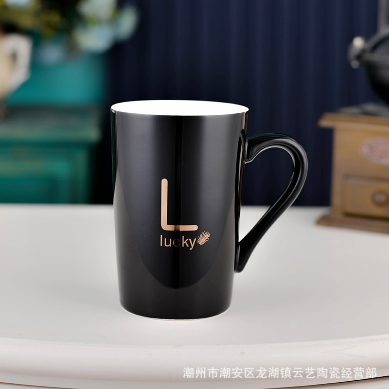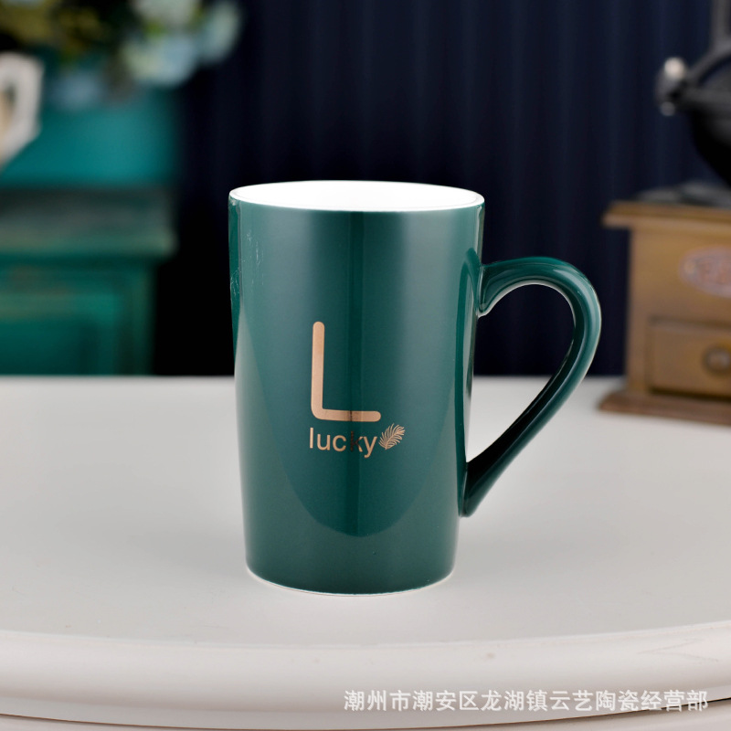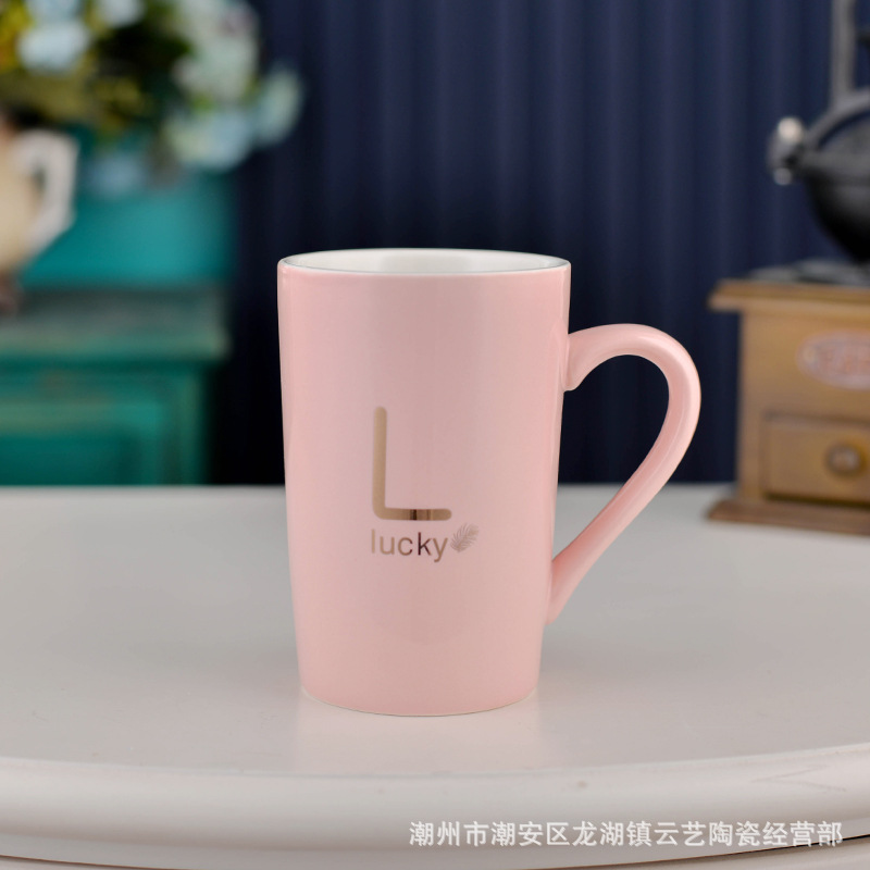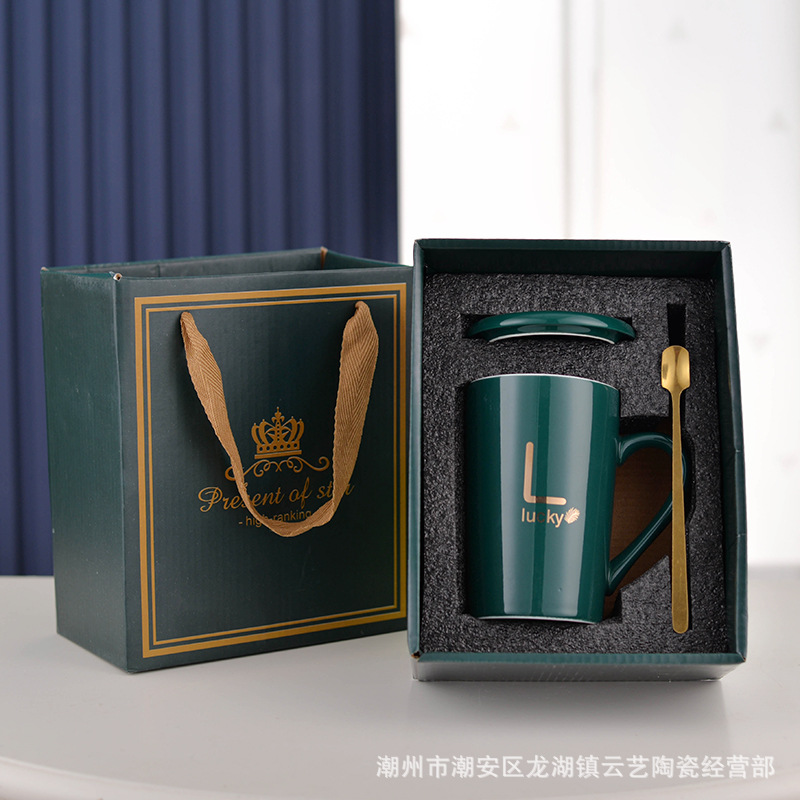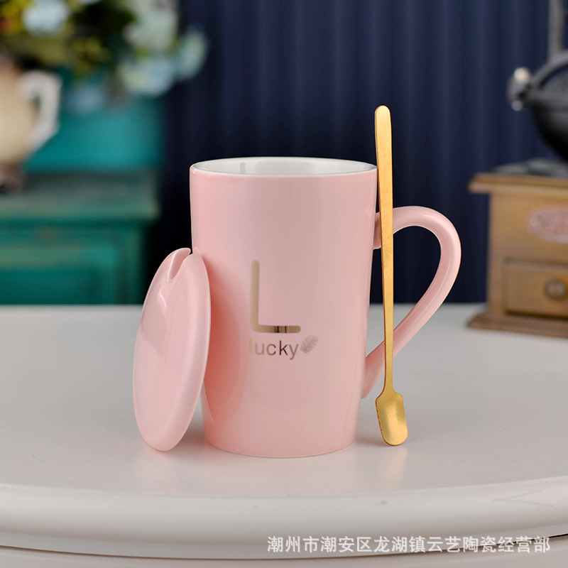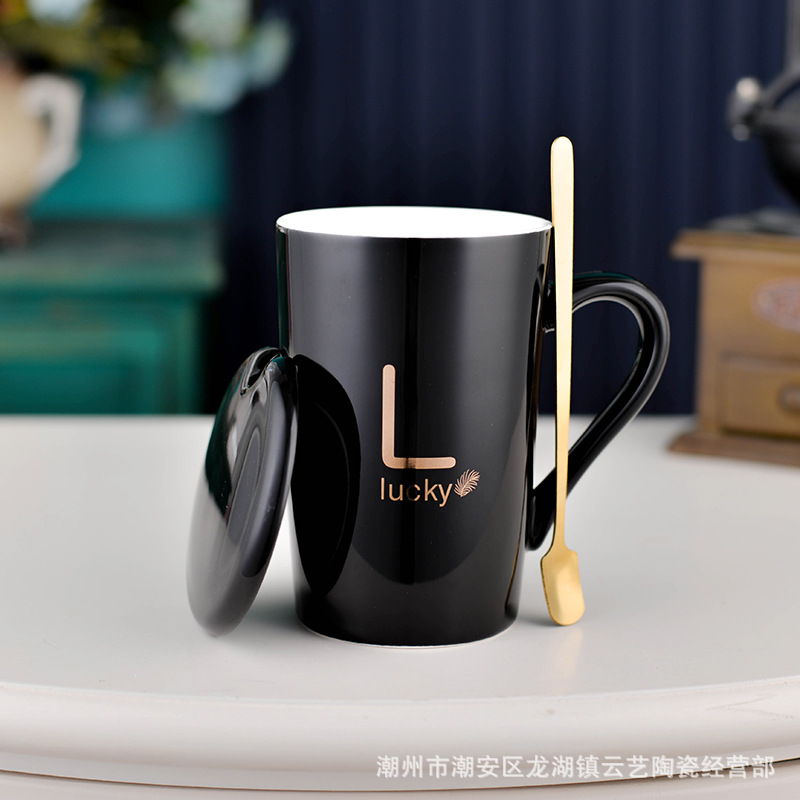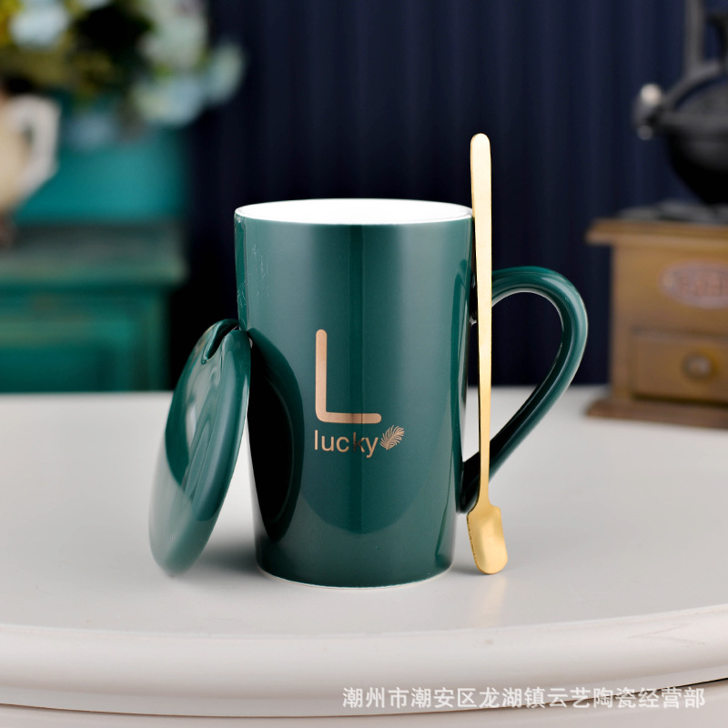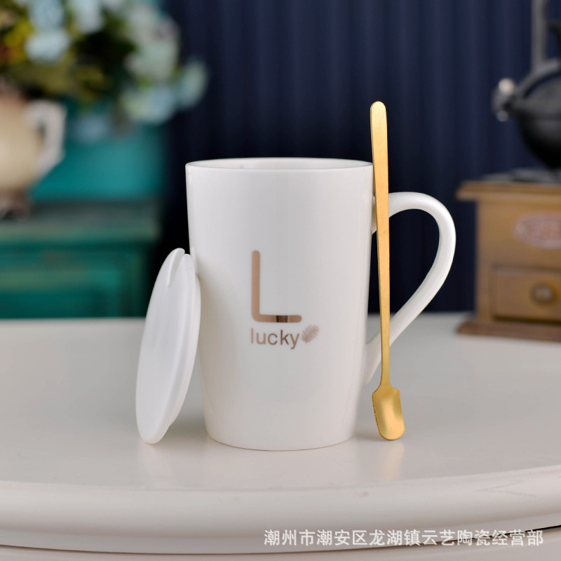뚜껑과 숟가락 세라믹 머그 머그와 창조적 인 편지 커플을위한 패션 결혼 선물 홈 인쇄 로고 동반 선물스토어 가기