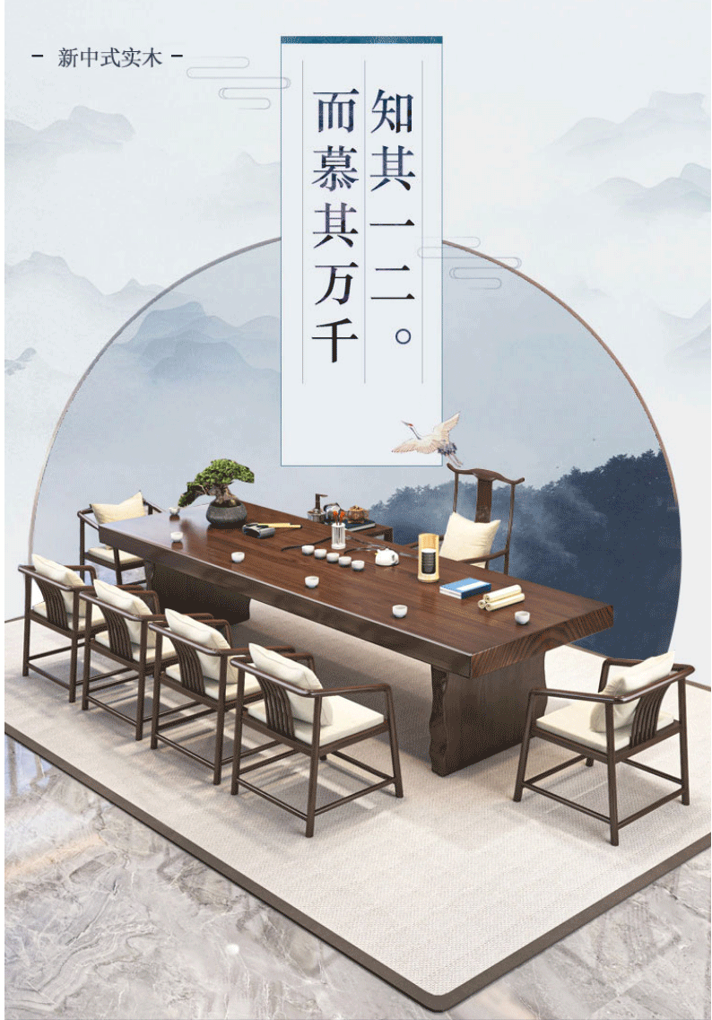 새로운 중국 스타일 대형 보드 티 테이블 홈 거실 젠 쿵푸 티 테이블 티 테이블 사무실 단단한 나무 티 테이블과 의자 조합스토어 가기