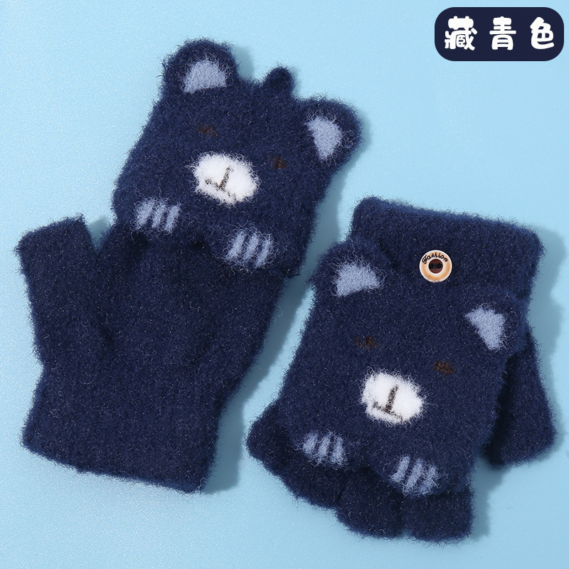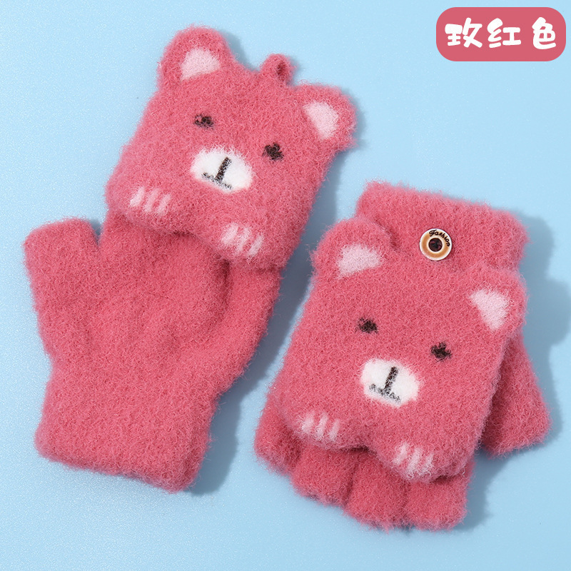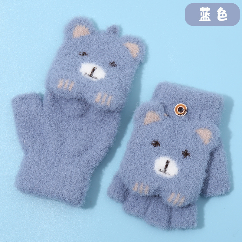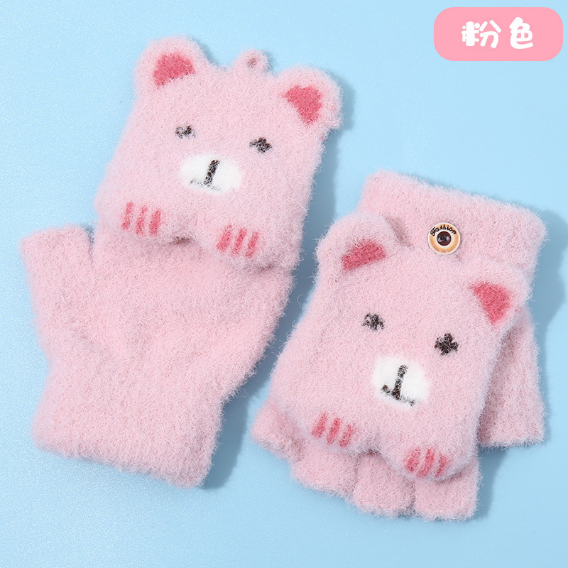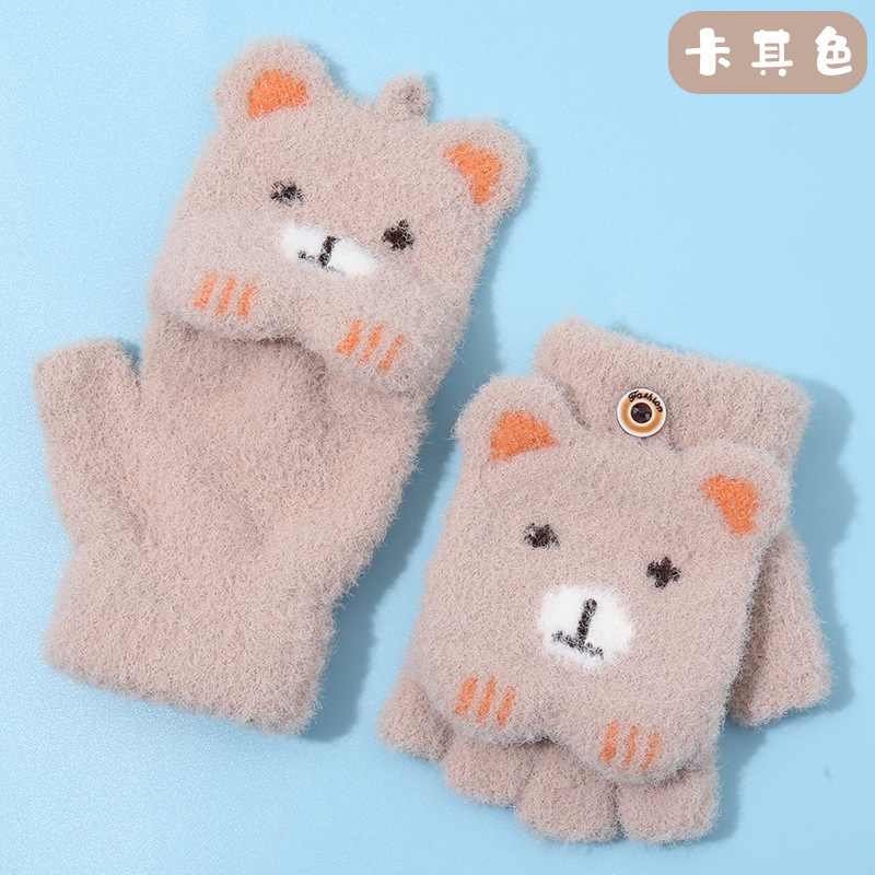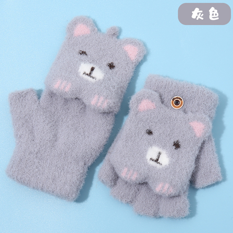 제조업체 재고 어린이 장갑 가을과 겨울 방한 따뜻한 기모 울 니트 반 손가락 플립 글씨 장갑스토어 가기