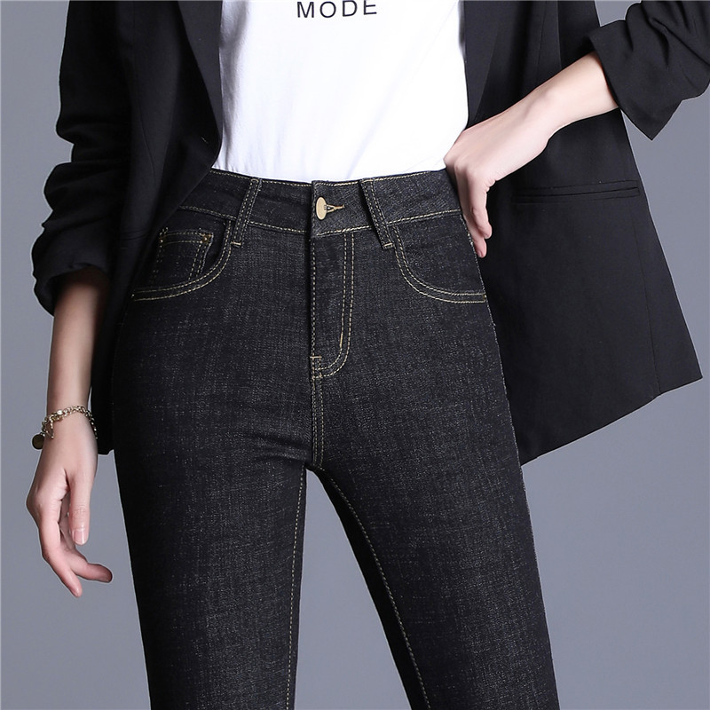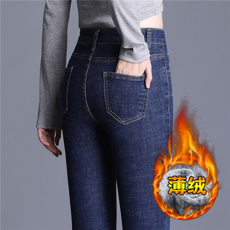 기모 청바지 여성 스키니 팬츠 가을/겨울 2023 얇은 벨벳 하이 웨이스트 슬리밍 여성 크롭 블랙 타이트 팬츠스토어 가기