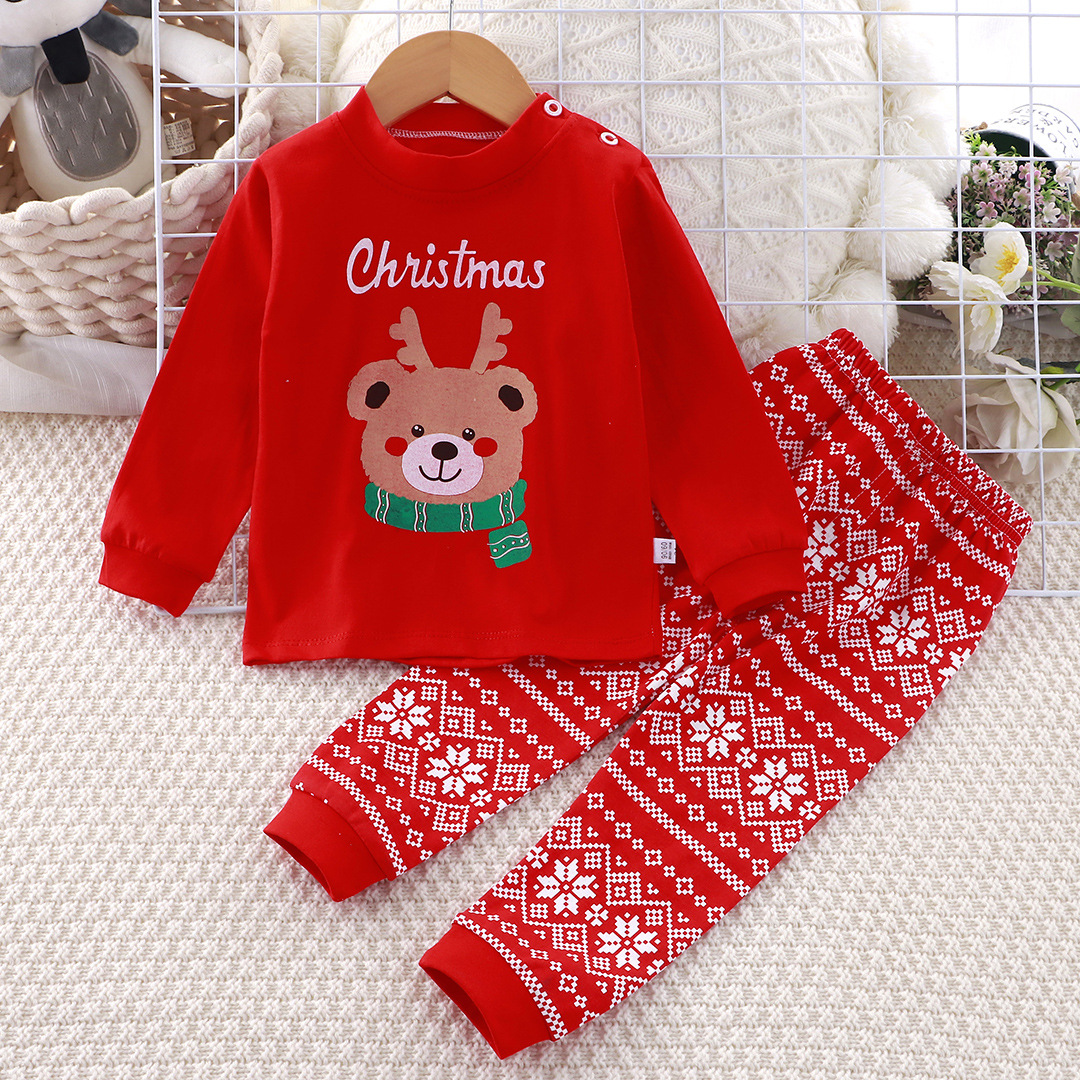2025 새로운 봄, 가을 어린이 순면 속옷 세트 홈 소년 가을 옷과 긴 바지 소녀 잠옷 투피스 세트