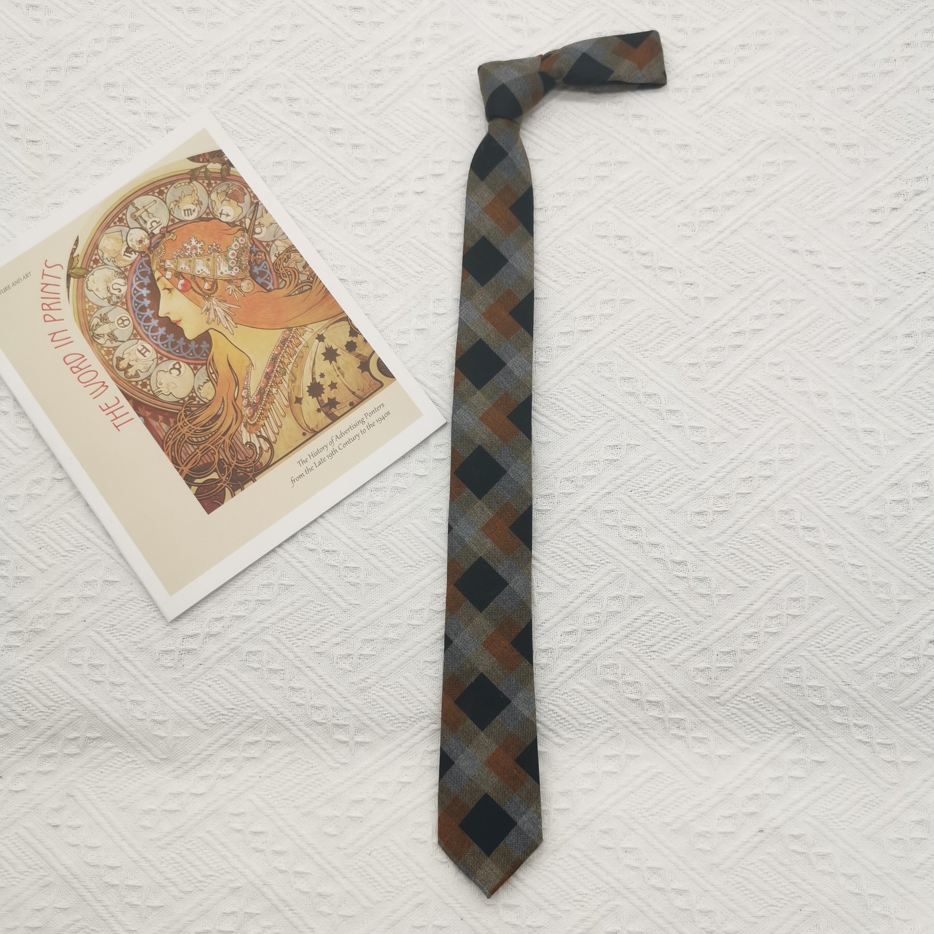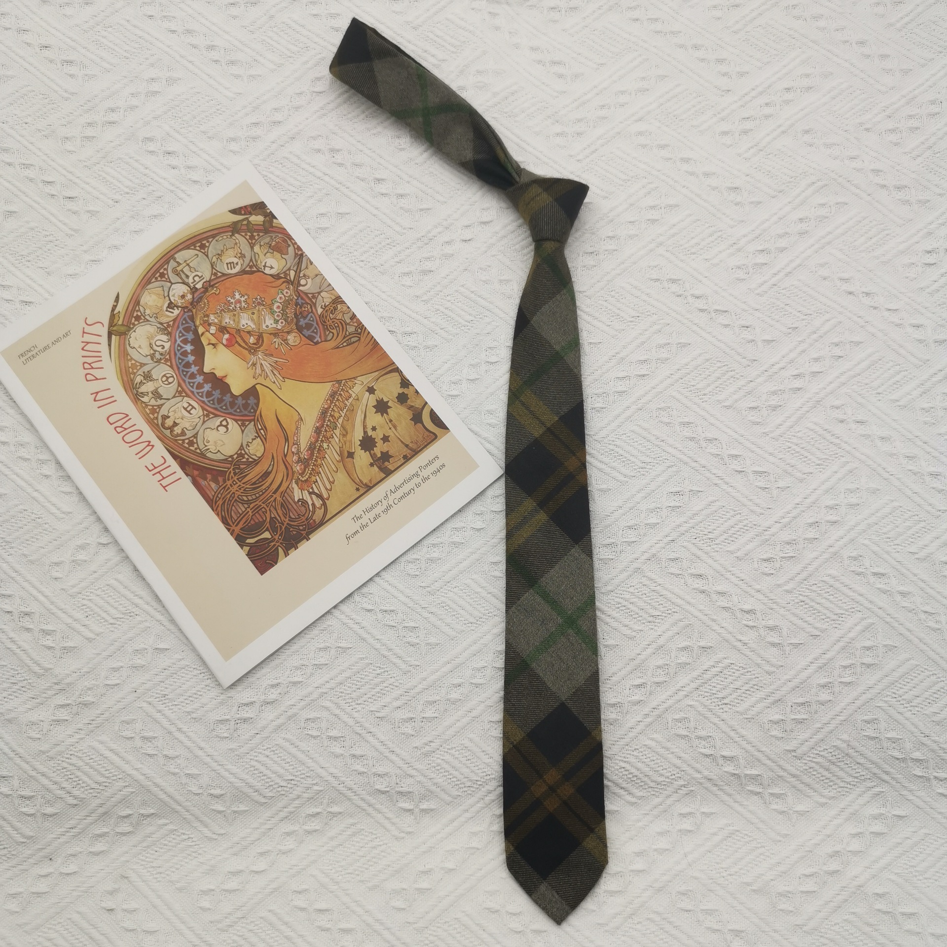 여성과 남성 학생을위한 양모 격자 무늬 복고풍 넥타이 대학 스타일 하라주쿠 스타일 일본식 핸드 히트 롱 Instagram 패션 멋진
