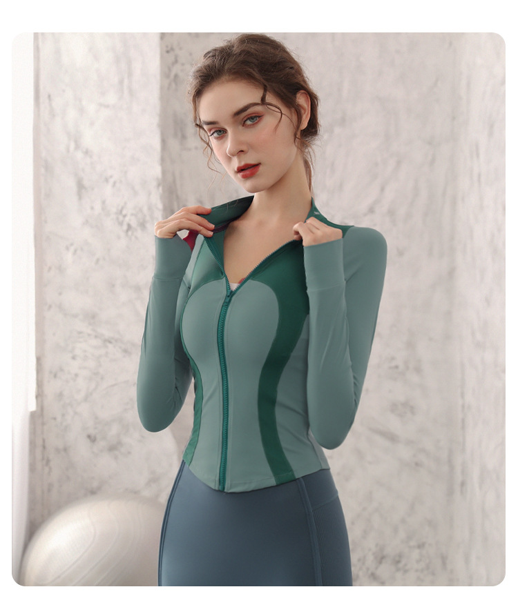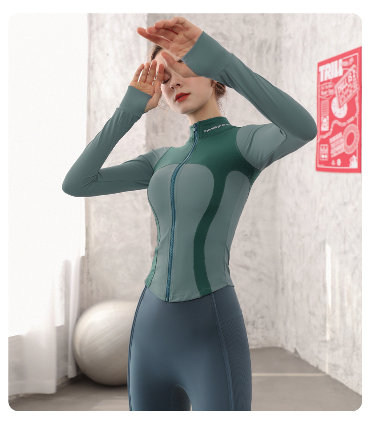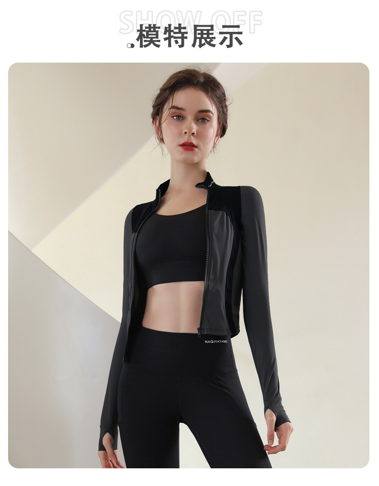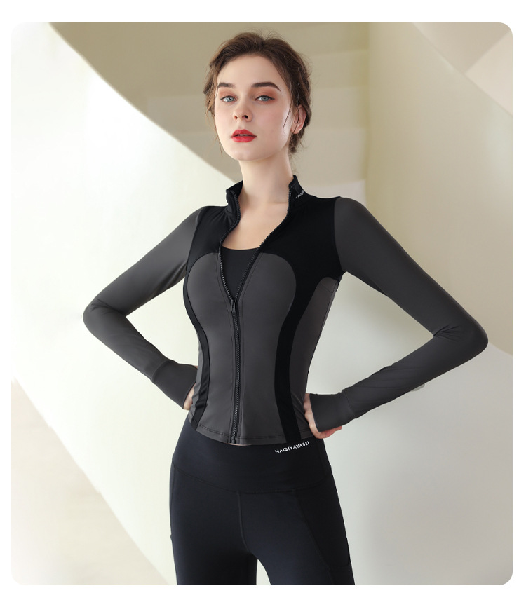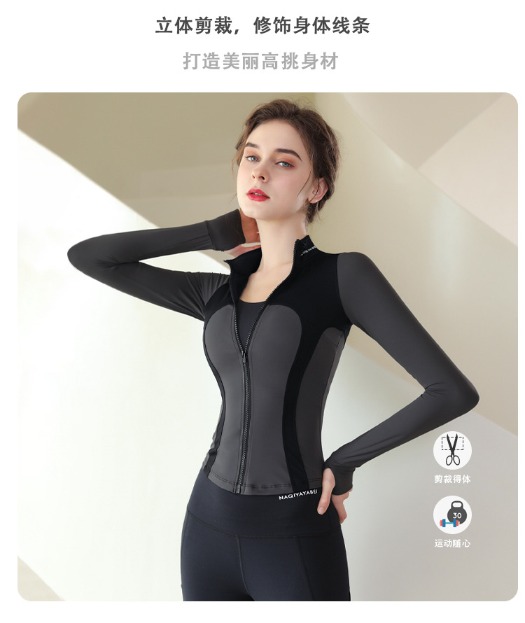 슬리밍 요가 의류 재킷 스트레치 탑 타이트 세로 칼라 지퍼 재킷 피트니스 속건 티셔츠 여성 스포츠 긴 소매