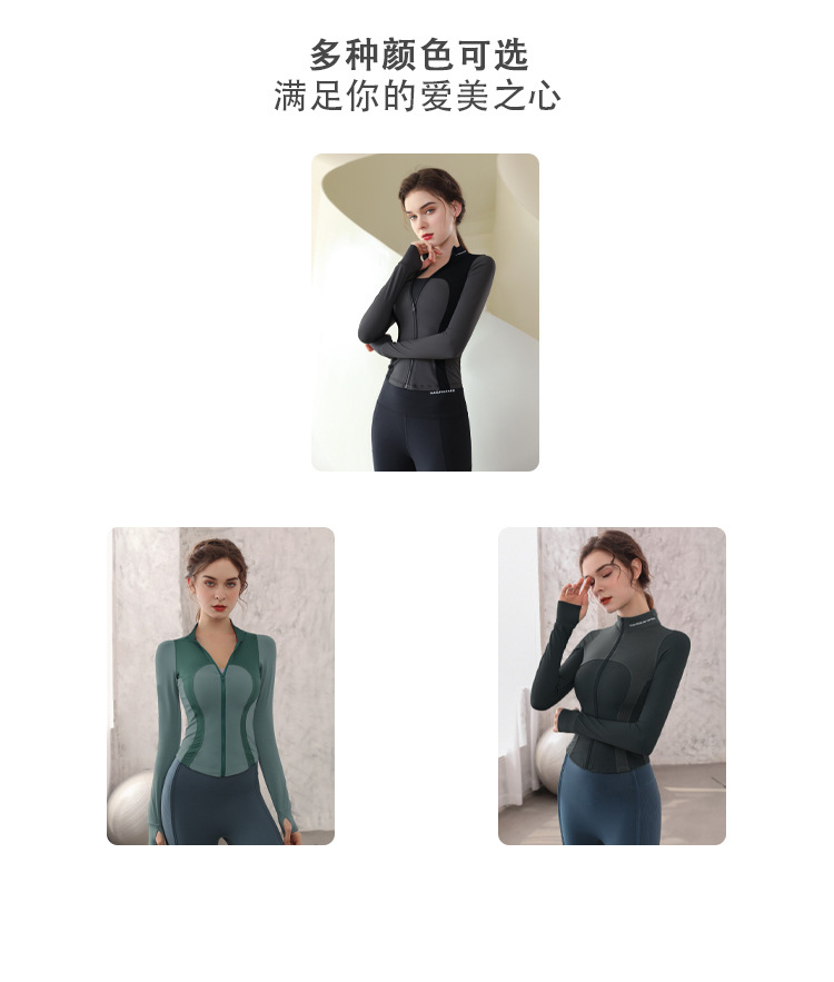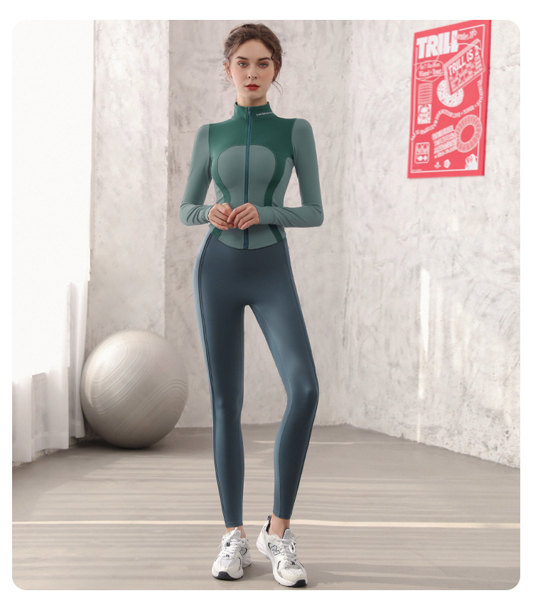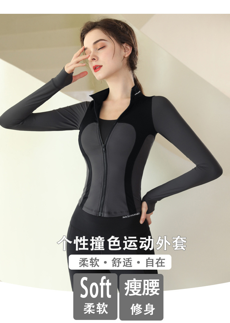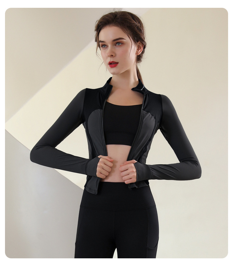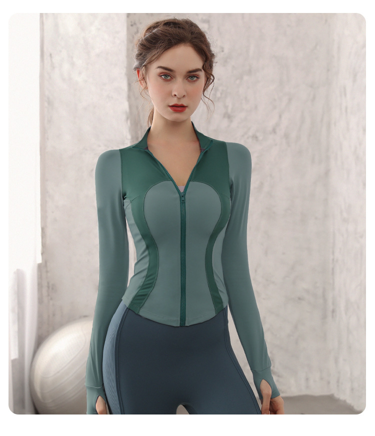 슬리밍 요가 의류 재킷 스트레치 탑 타이트 세로 칼라 지퍼 재킷 피트니스 속건 티셔츠 여성 스포츠 긴 소매