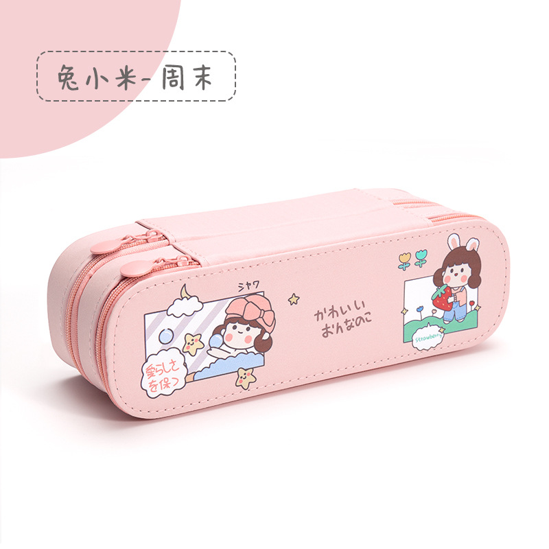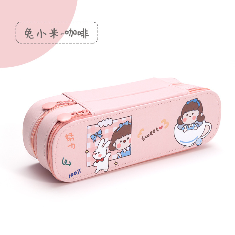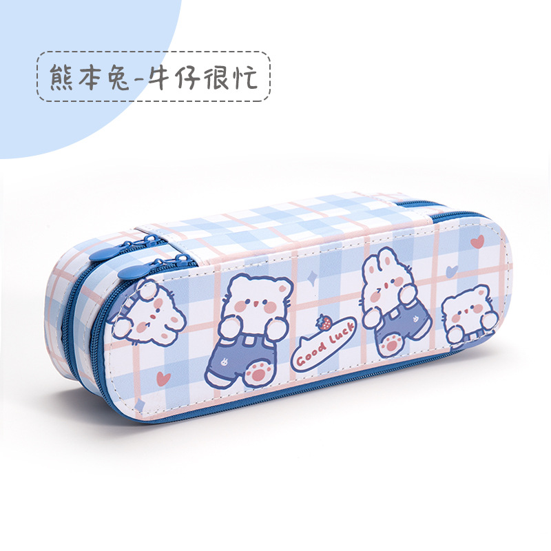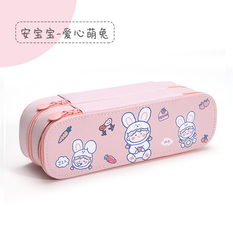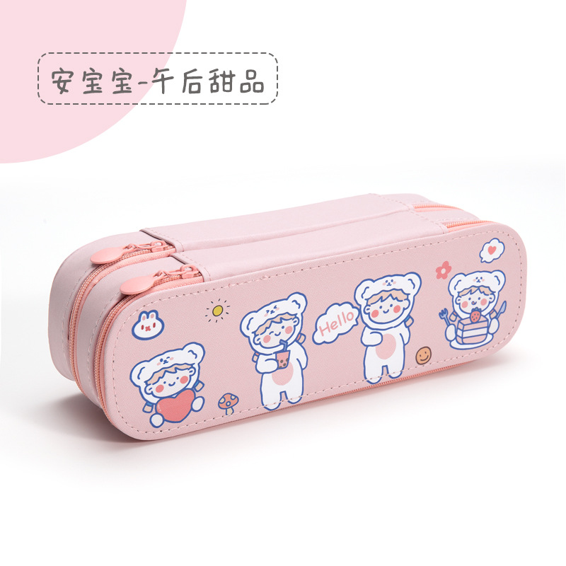 인 고가 필통 크리에이티브 대용량 캔버스 더블 레이어 필통 중학교 초등학교 남녀 문구 상자 도매스토어 가기