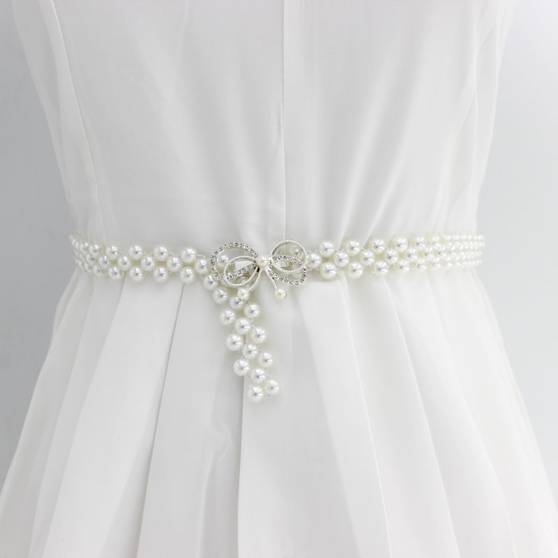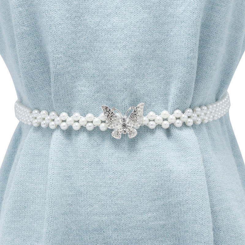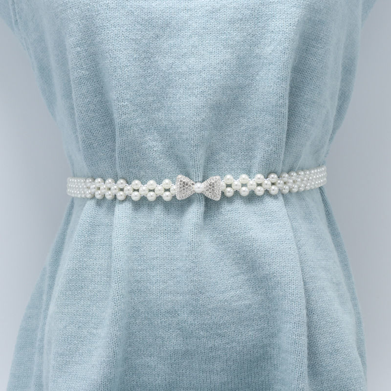 여자의 진주 얇은 허리 체인 탄성 스트레치 원피스 한국어 모든 일치 원피스 벨트 여아 패션 무료 배송스토어 가기