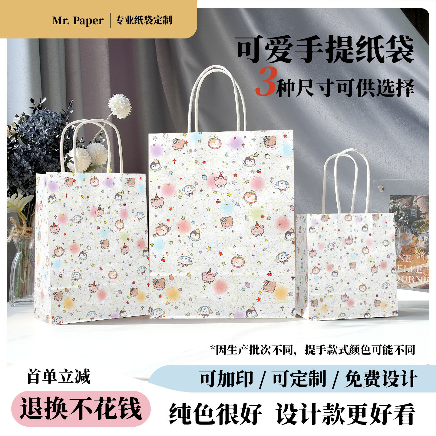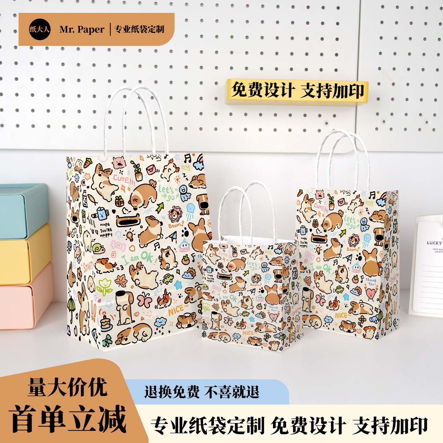 크라프트 종이봉투, 손잡이가 달린 가방, 선물봉투, 소형 밀크티 테이크아웃 포장봉투, 베이킹 커피 포장봉투, 인쇄 가능스토어 가기