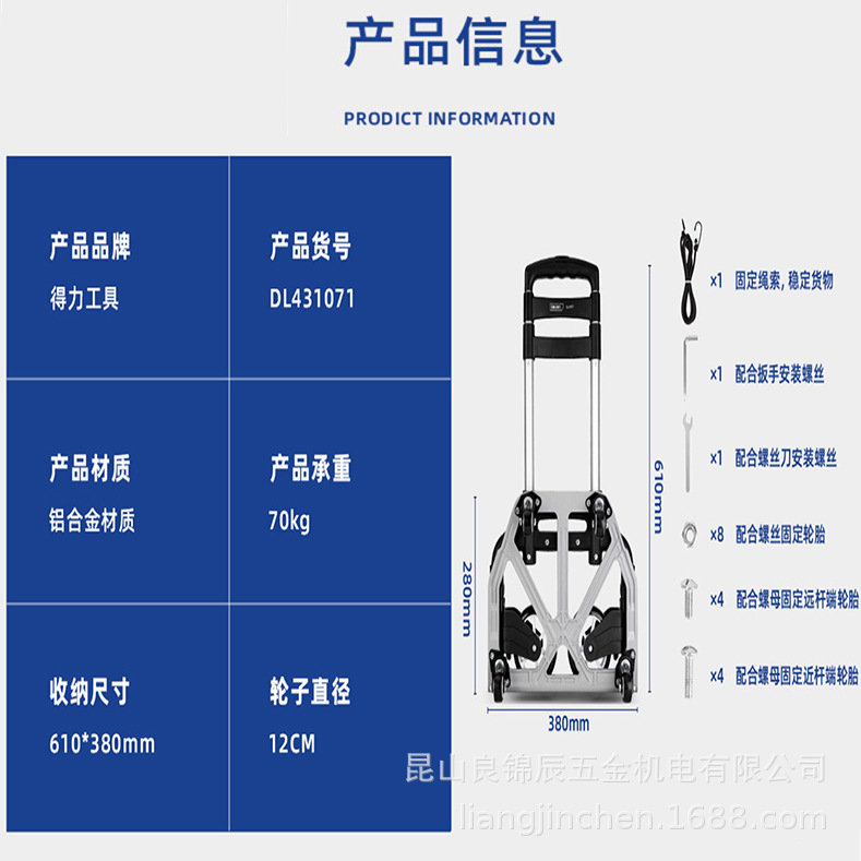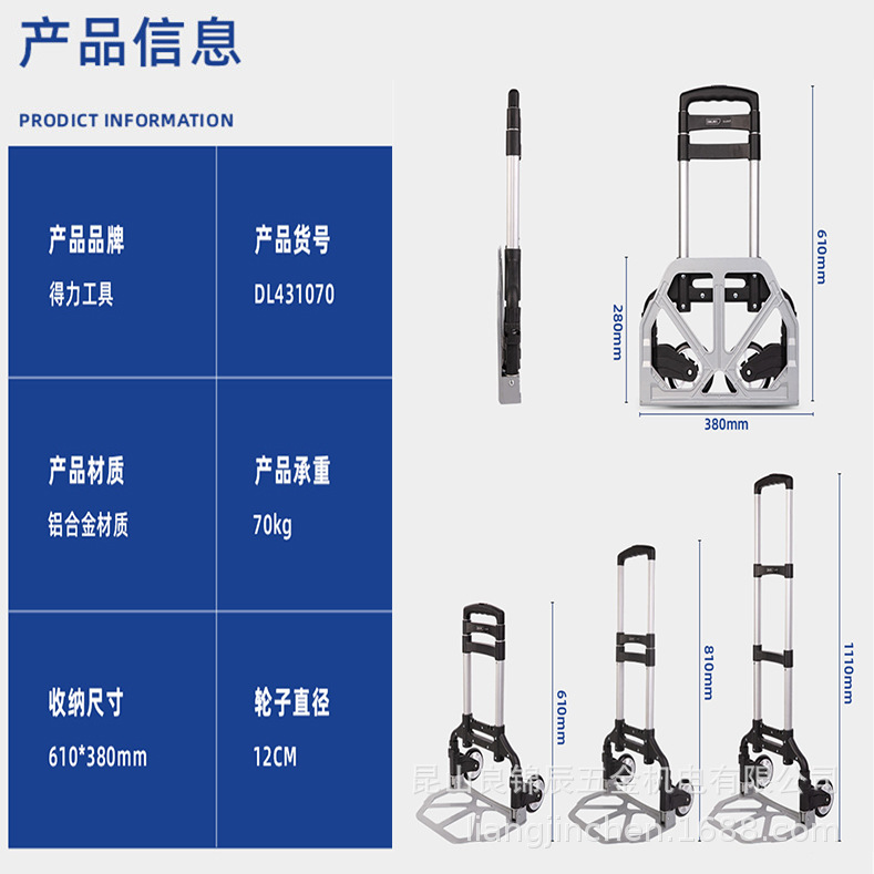 델리 도구 홈 접이식 수하물 트롤리 휴대용 알루미늄 합금 트롤리 DL431070 1