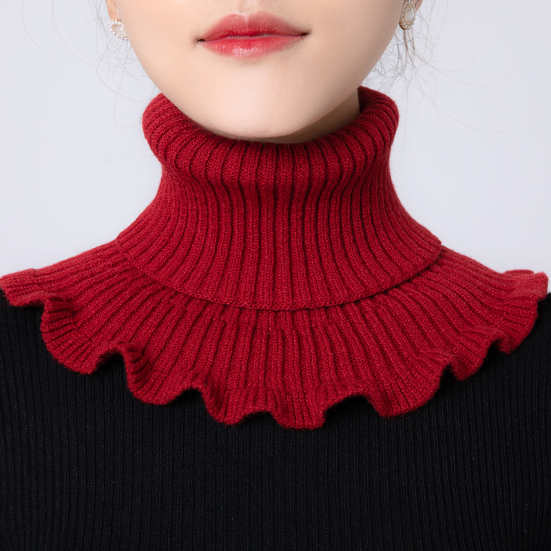 단색 풀오버 스카프 여성용 가을과 겨울 스카프 모든 매치 보온 경추 보호 탄성 니트 가짜 칼라 울 하이 칼라 슬리브