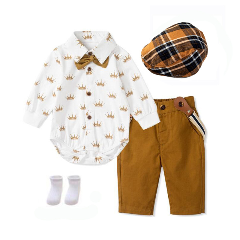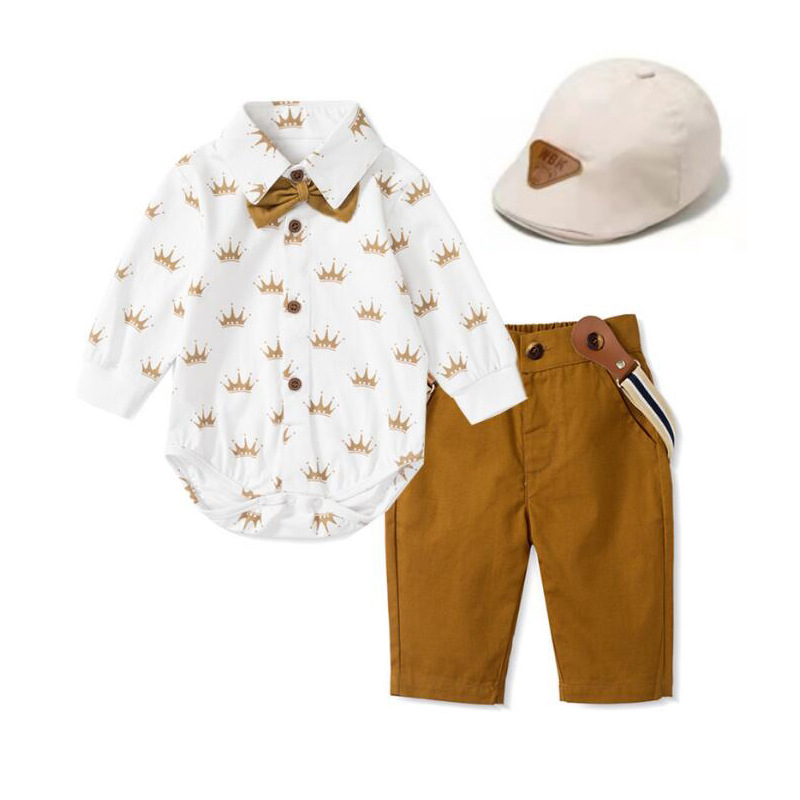 유럽과 미국 남자의 아기 신사 원피스 유아 봄과 가을 새로운 긴 소매 바지 삼각형 하 옷을 세트 머리카락의 세대