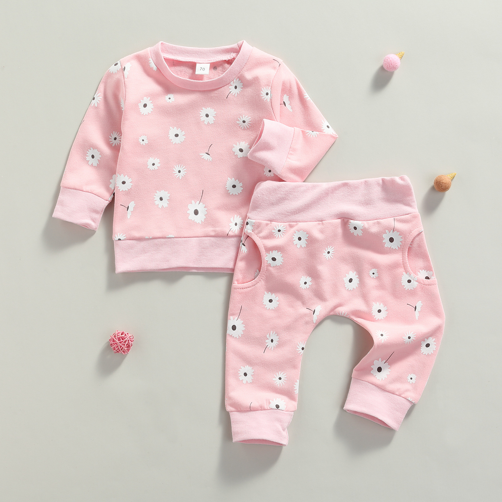 어린이 in 유럽 및 미국 대외 무역 폭발 소녀 새로운 긴팔 세트 민들레 인쇄 긴팔 스웨터 투피스 세트