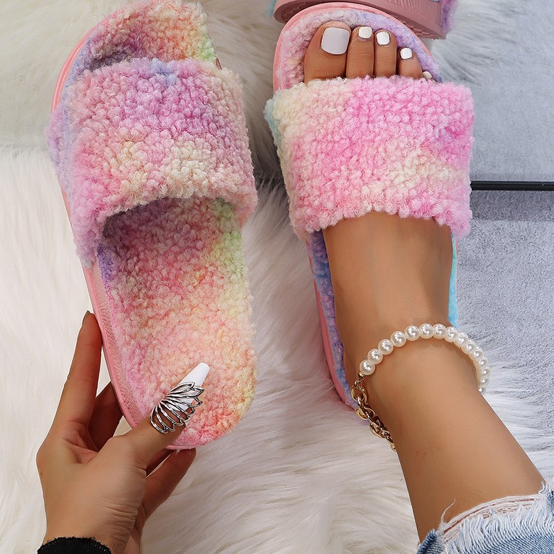 크로스 보더 플러스 사이즈 36-43 여성 신발 2021 가을 새로운 패션 양고기 울 플랫 슬리퍼 여성스토어 가기