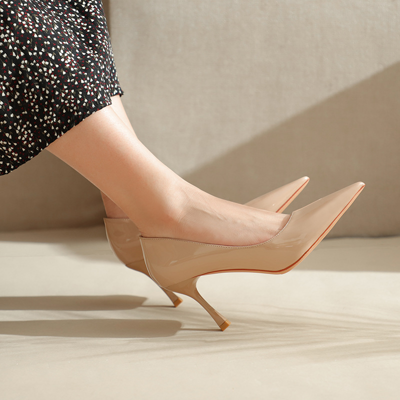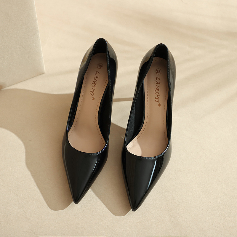 31-44 사이즈 gjm01-5 에나멜 가죽 뾰족한 발가락 얕은 스틸레토 힐 하이힐 여성 신발 모든 매치 슬림 하이힐 신발스토어 가기