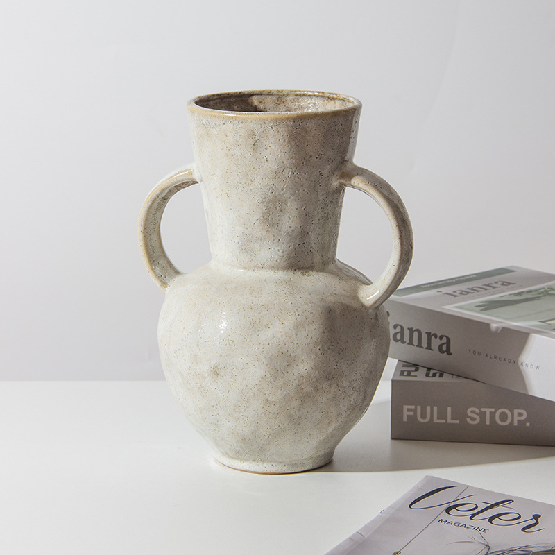 Lemeng 와비사비 스타일 세라믹 꽃병 이중 귀 대구경 꽃꽂이 호텔 B&B 삽화 세라믹 장식품스토어 가기