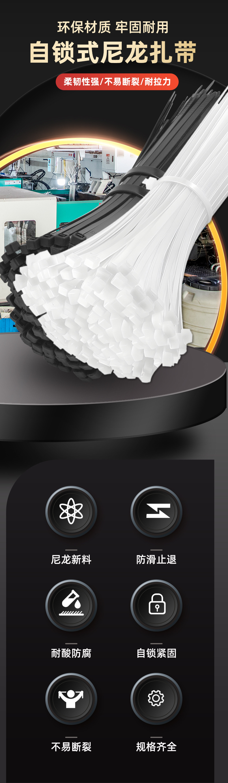 나일론 케이블 타이 제조업체 4*150*5*200*8*300 자동 잠금식 플라스틱 흰색 일반 포장 재고 도매스토어 가기
