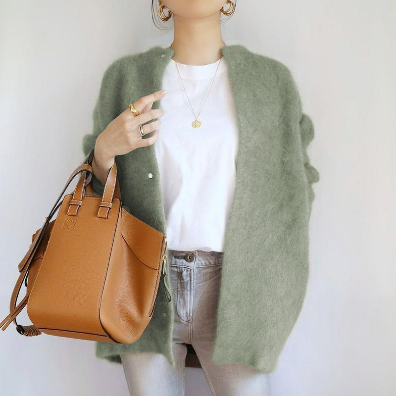 6가지 색상 재고 있음 아마존 일본 및 한국 여성용 울 스웨터 2025 가을 겨울 신상품 중간 길이 단색 니트웨어스토어 가기