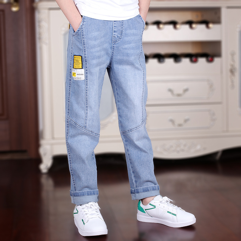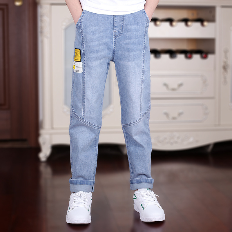 남아용 봄 가을 청바지 도매 재고 2024 신상품 중대형 아동용 블루 데님 바지 아동용 원피스 배송