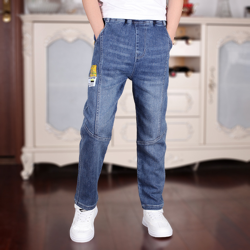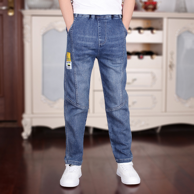 남아용 봄 가을 청바지 도매 재고 2024 신상품 중대형 아동용 블루 데님 바지 아동용 원피스 배송스토어 가기