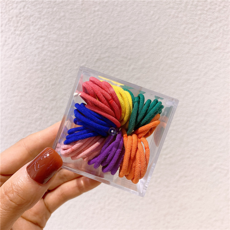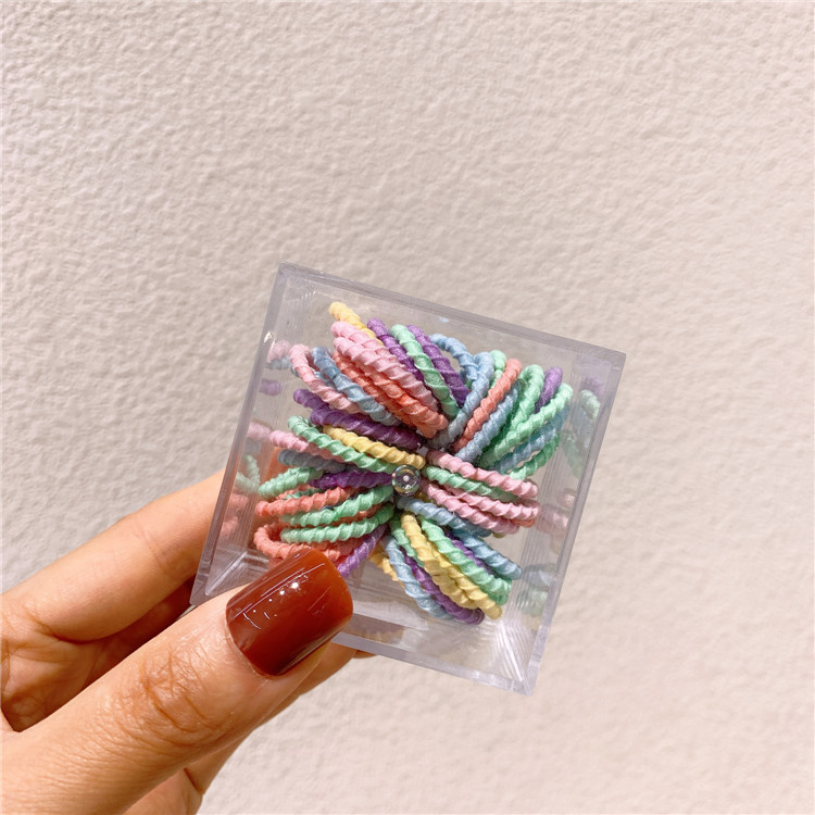 60 박스 어린이 색상 작은 고무 밴드 캔디 컬러 헤어 링 귀여운 아기 소녀 엄지 헤어 로프 넥타이 헤어 로프스토어 가기