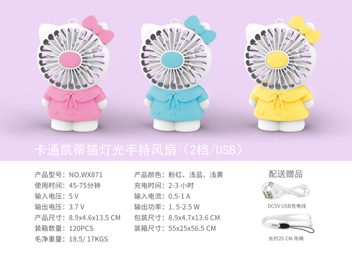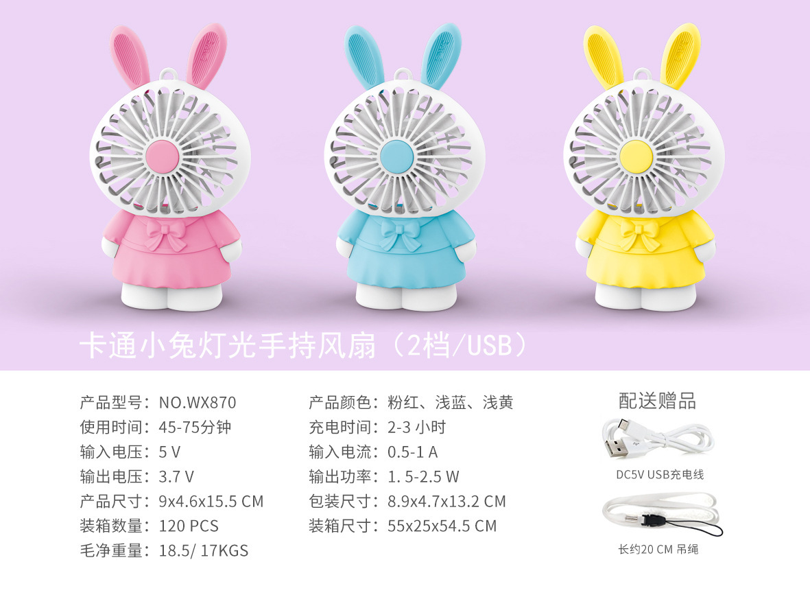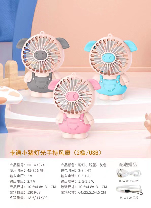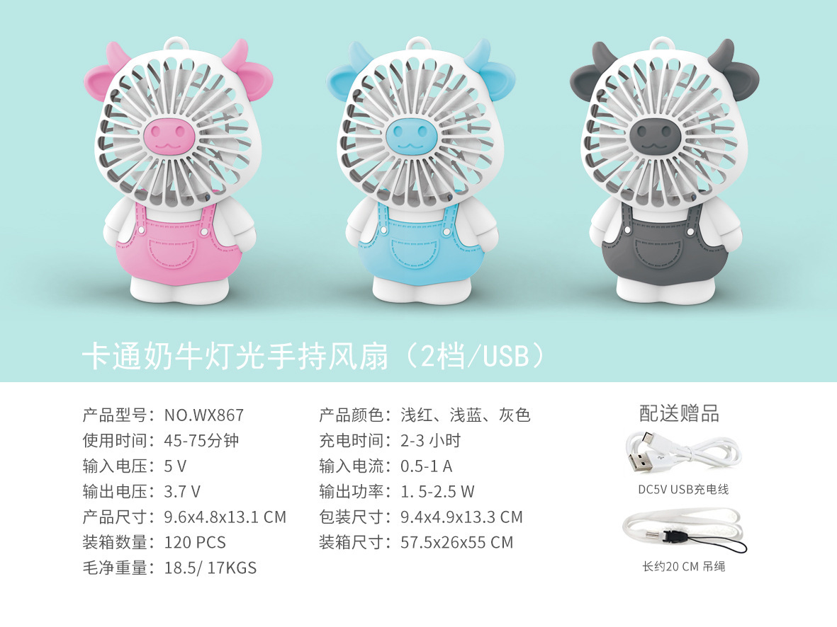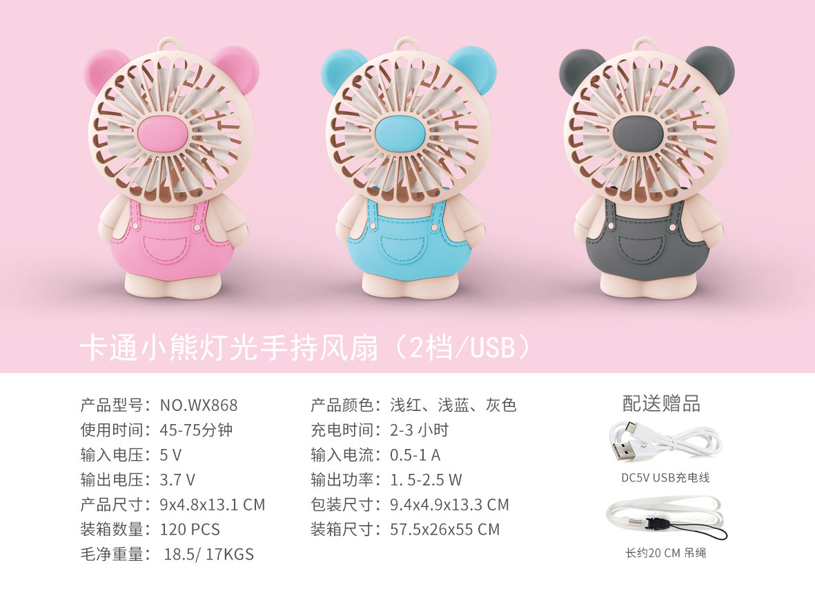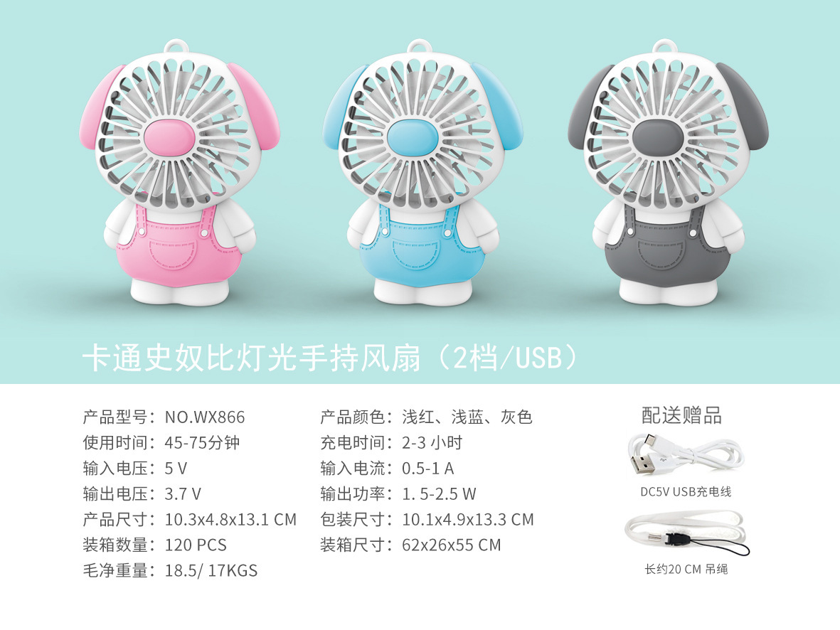 만화 핸드 헬드 미니 팬 충전식 조명 2 동물 끈 학생 선물 소형 팬 제조업체 제품
