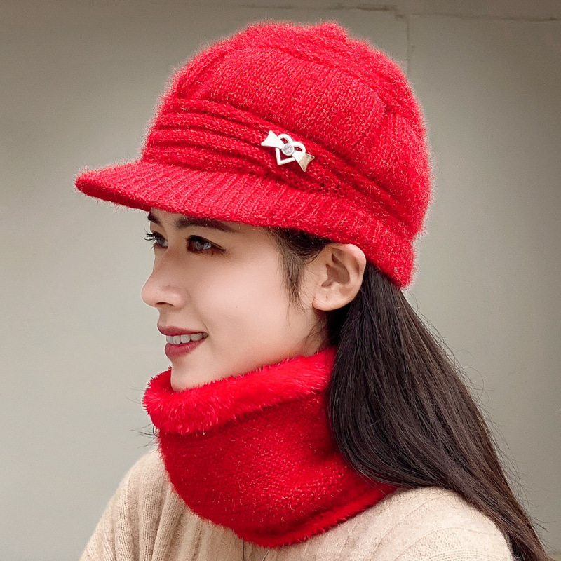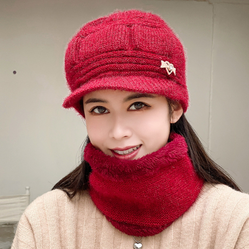 겨울 어머니의 모자 중년 여성의 모자 단색 기모 따뜻한 양모 모자 두꺼운 벨트 함께 니트 모자